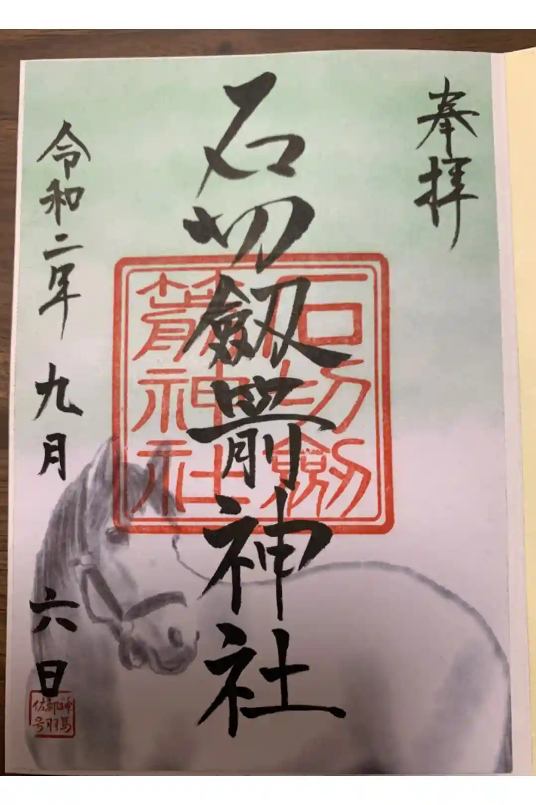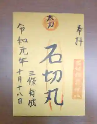 書置き。石切さんの御朱印帳に拝受。