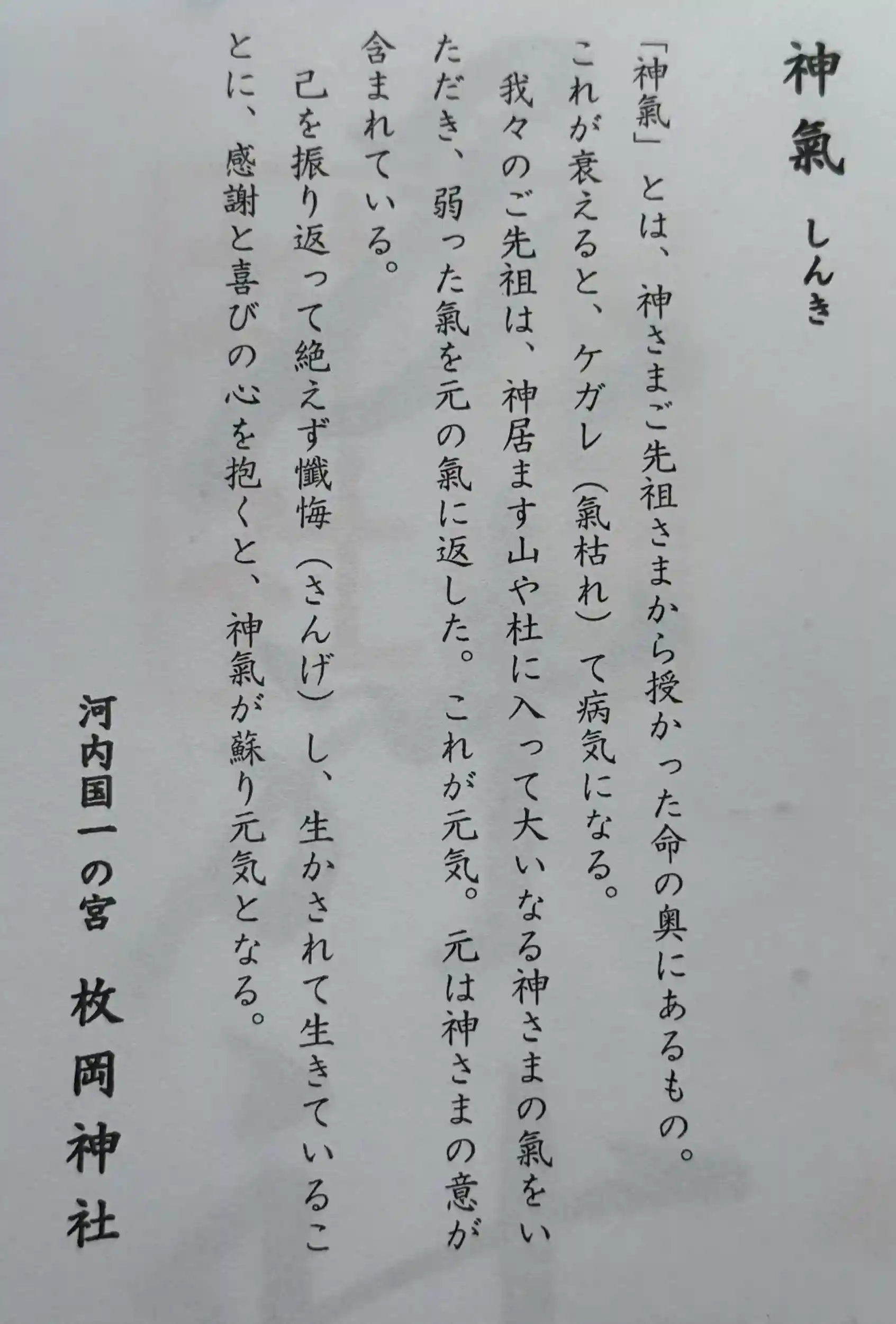 「神氣」とは、神さまご先祖さまから授かった命の奥にあるもの。