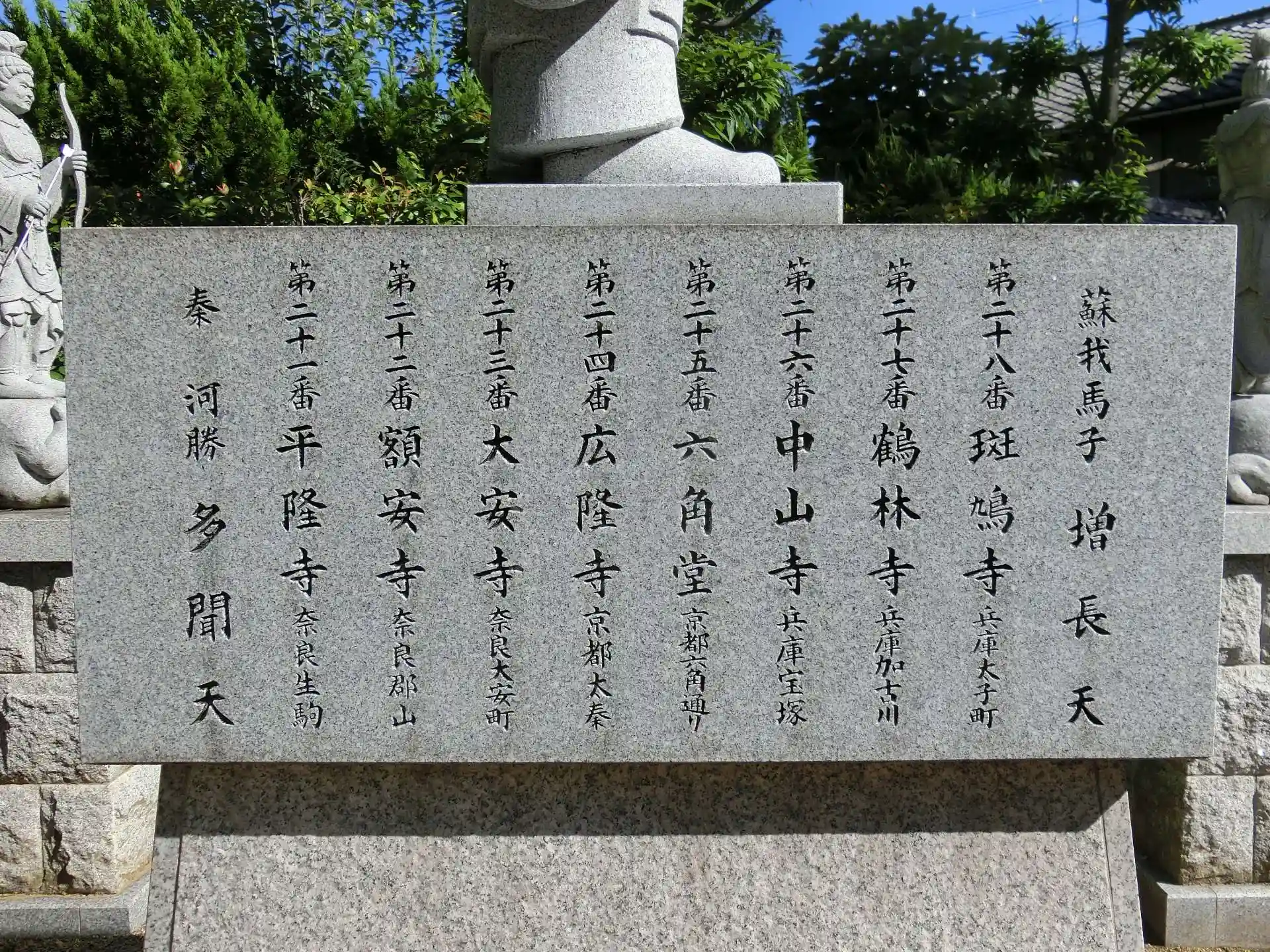聖徳太子四天王として「蘇我馬子=増長天」「秦河勝=多聞天」「小野妹子=持国天」「迹見赤檮=広目天」が記載された石をみたとき、四天王寺の「四天王」も実際には聖徳太子を助けたこの4人を意味するのだと理解しました。