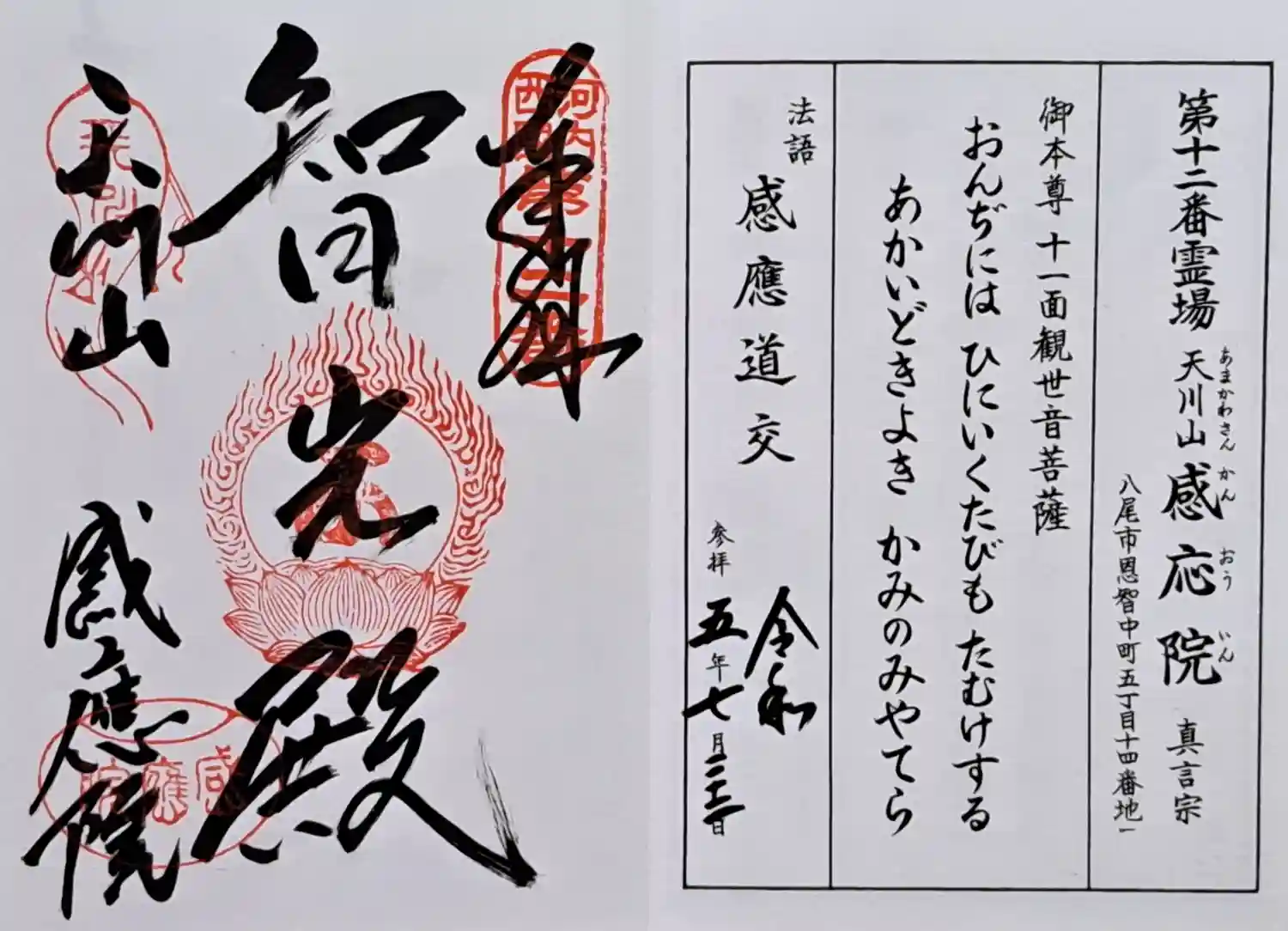 河内西国霊場第十二番の御朱印