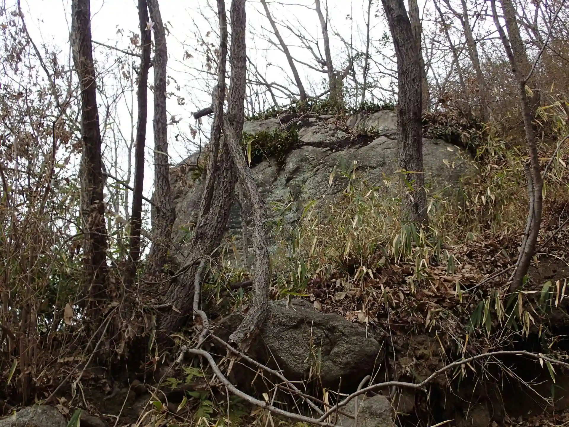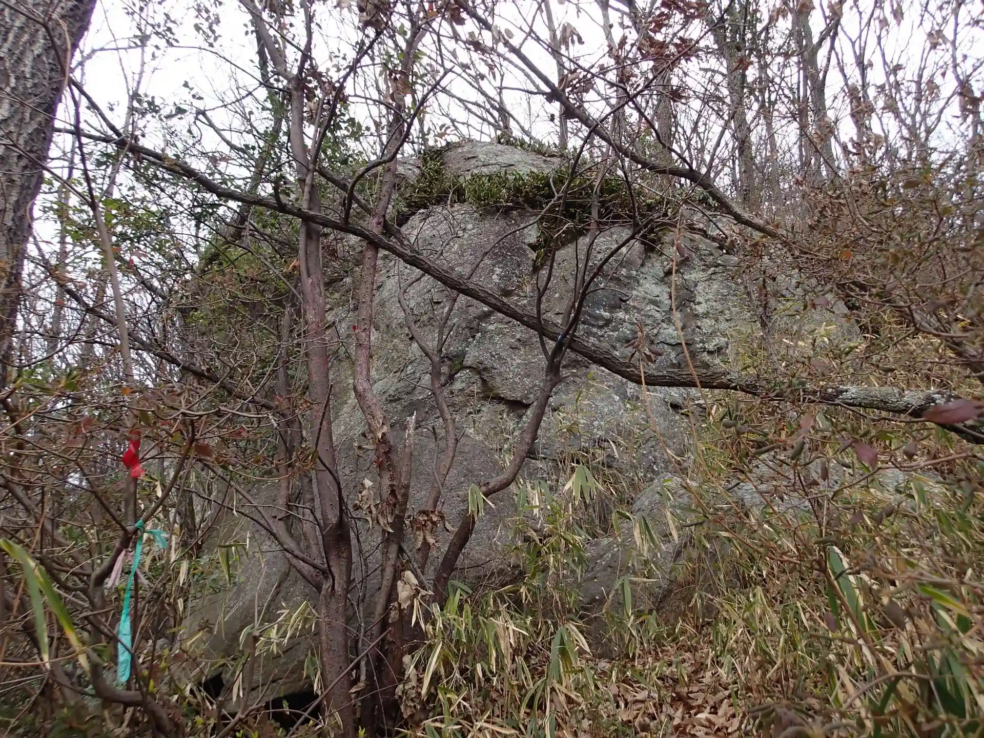 神社参拝の後、麓の鳥居のところから振り返ってみたときに山腹にしめ縄の掛けられた大岩を拝することができました。そこには到達することができませんでした。