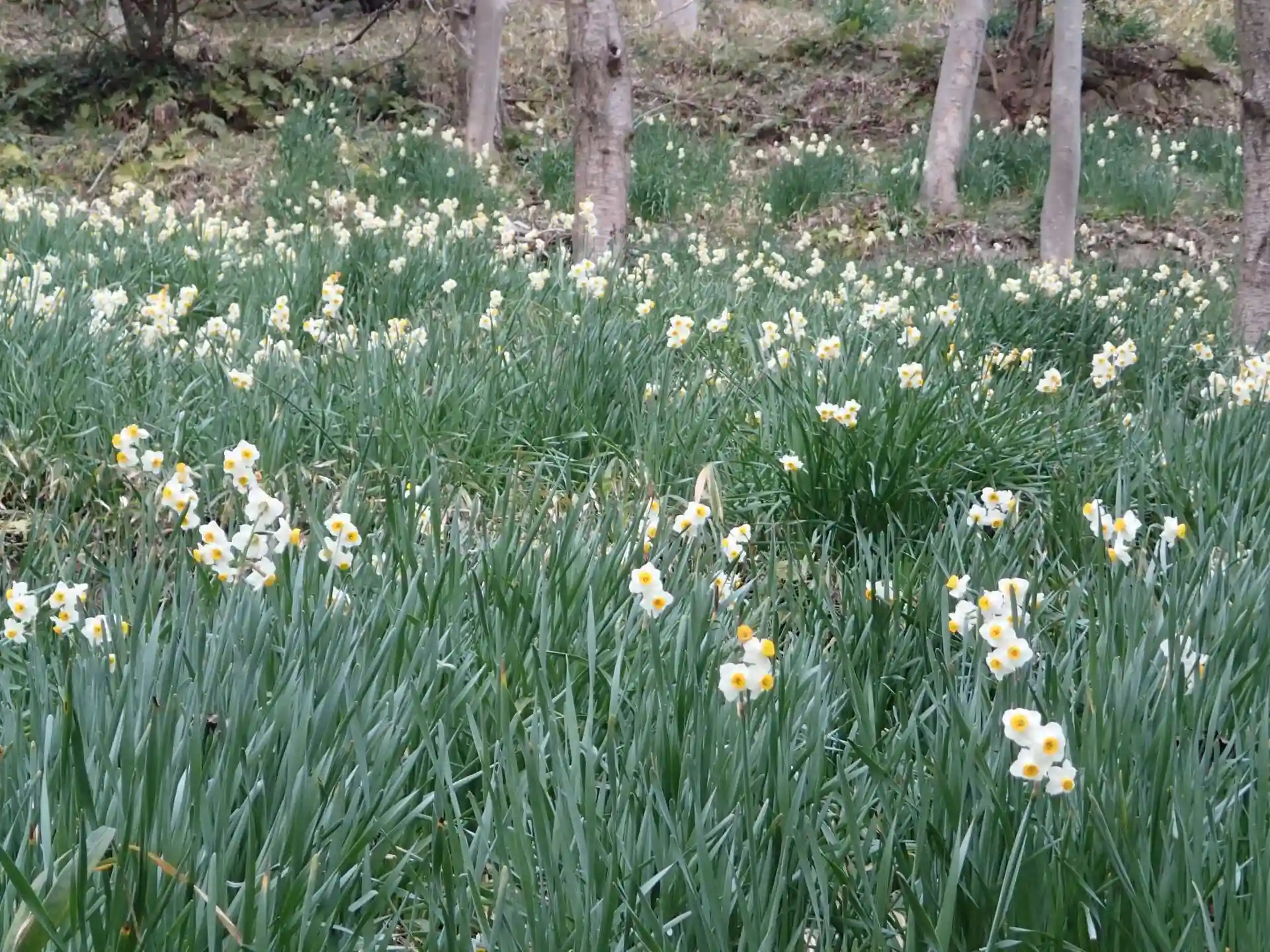 帰りには、水仙の群落地を通るルートで降りました。たまたま良く咲いている時期でした。