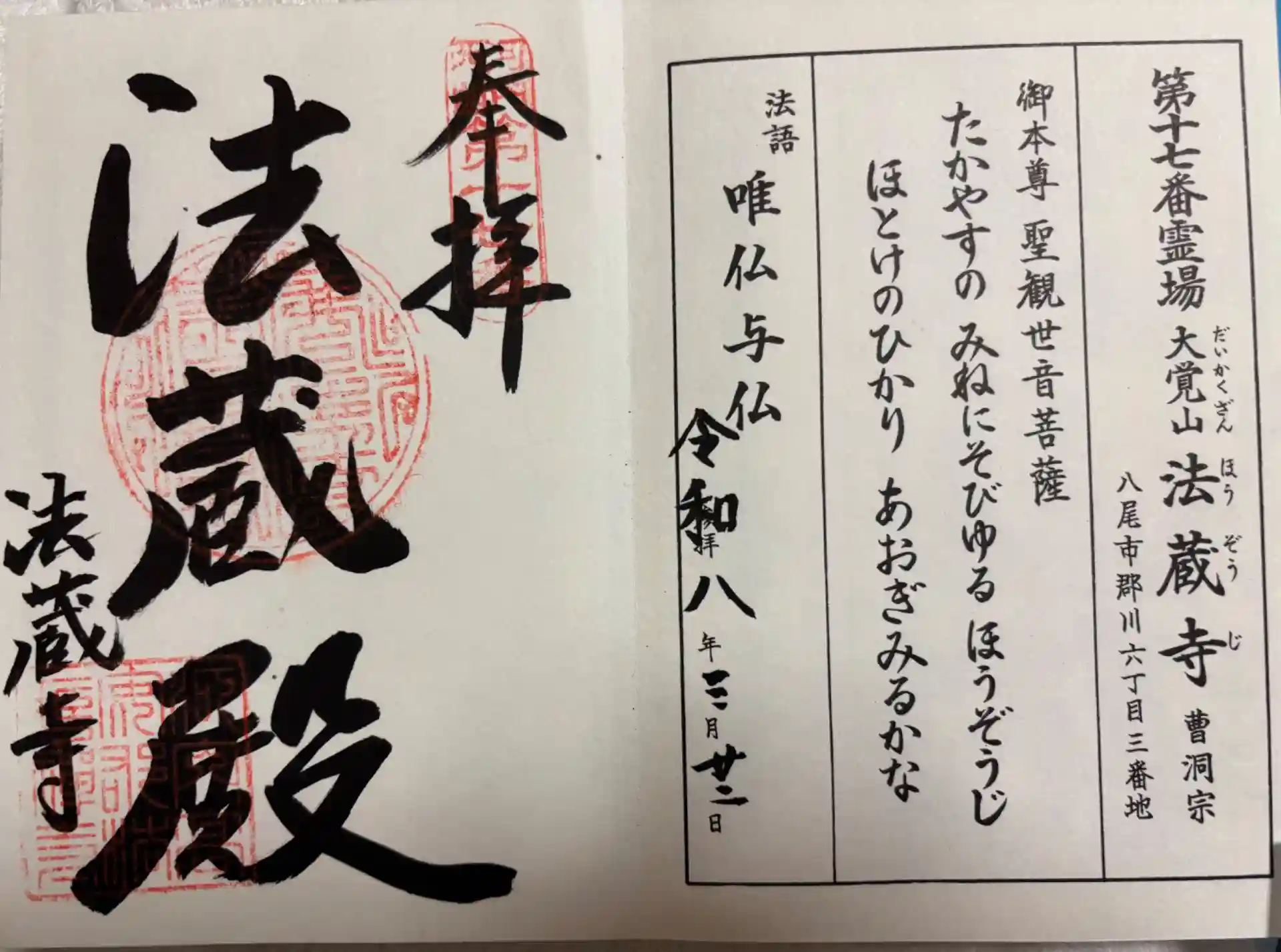 法蔵寺の御朱印