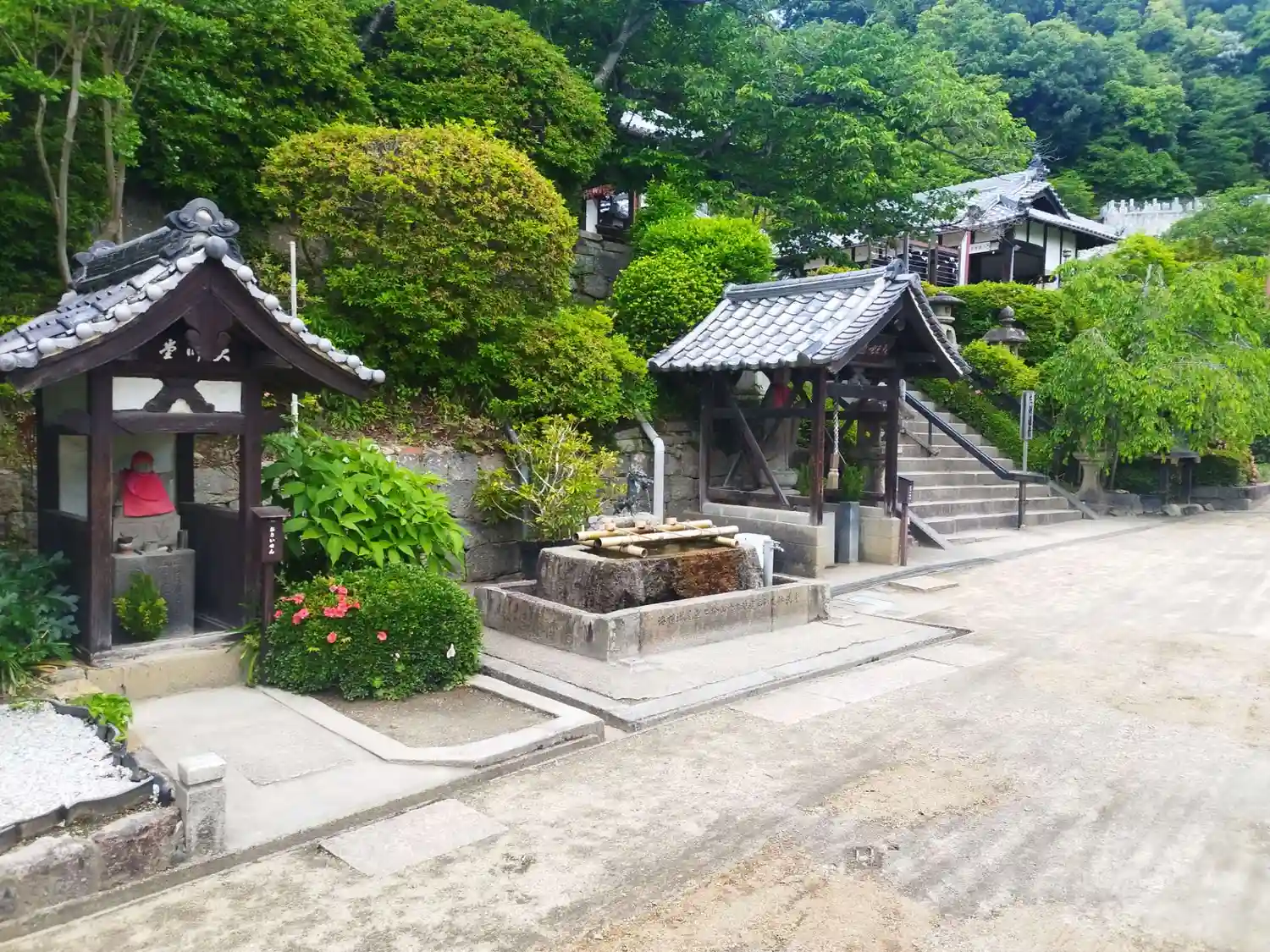 中央:手水、両側:地藏堂
