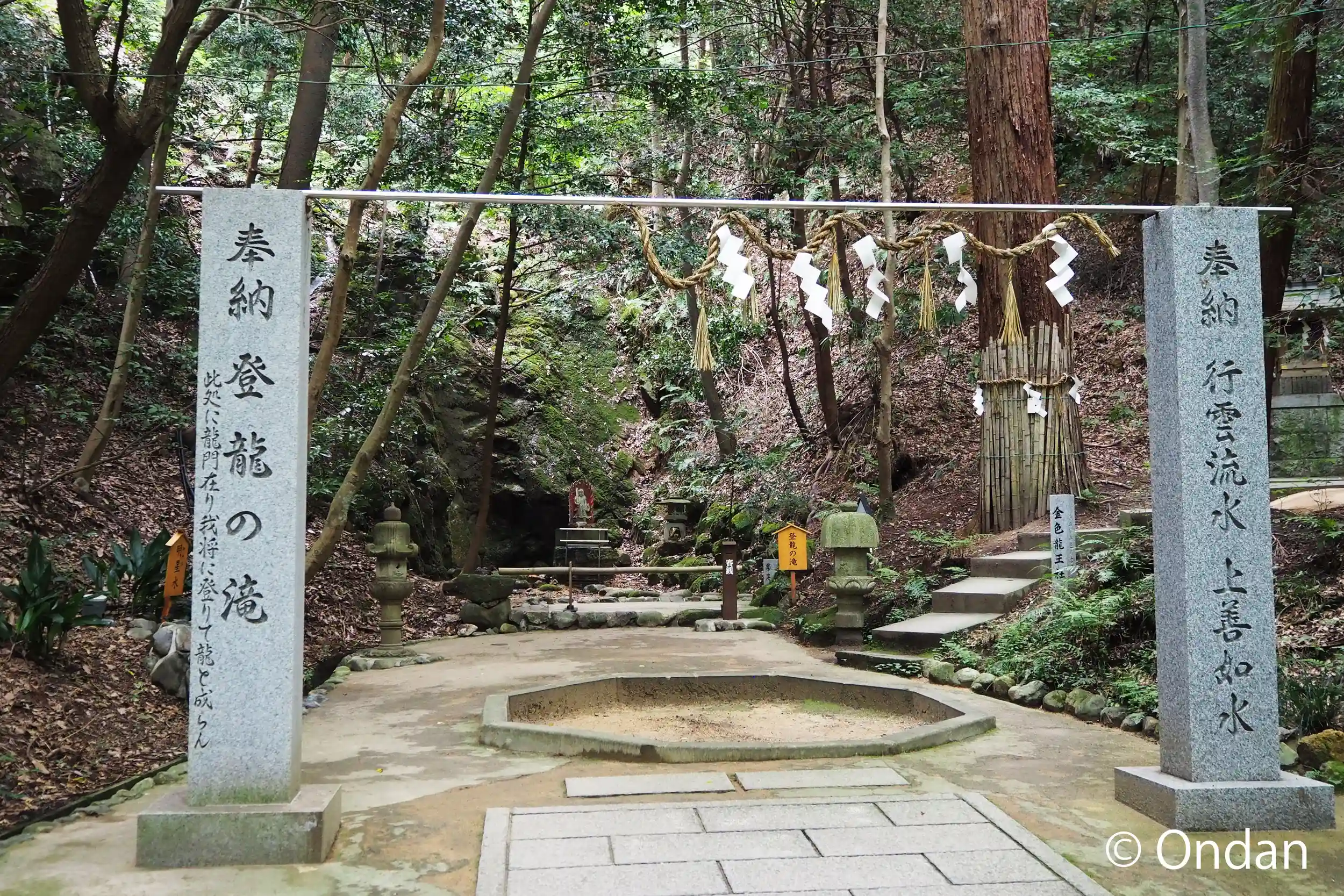 拝殿下から、左に降ると登龍の滝。隕石が落ちた後か?と言われているそうです。なんだか神聖な雰囲気でした。