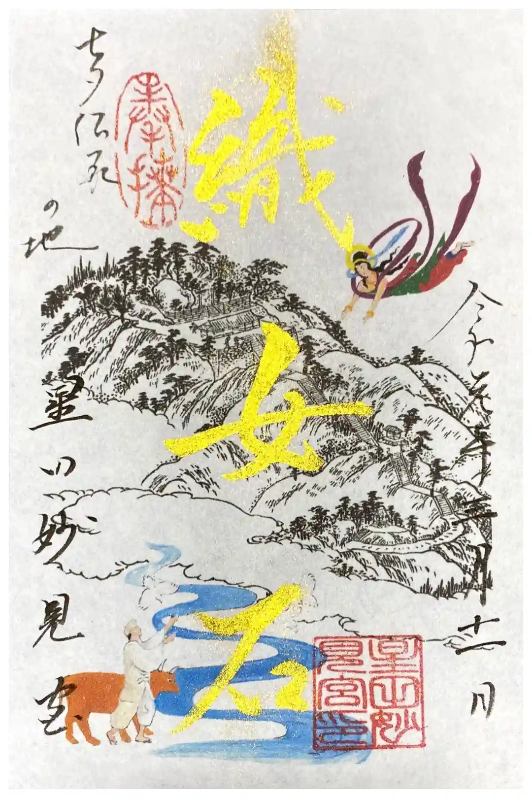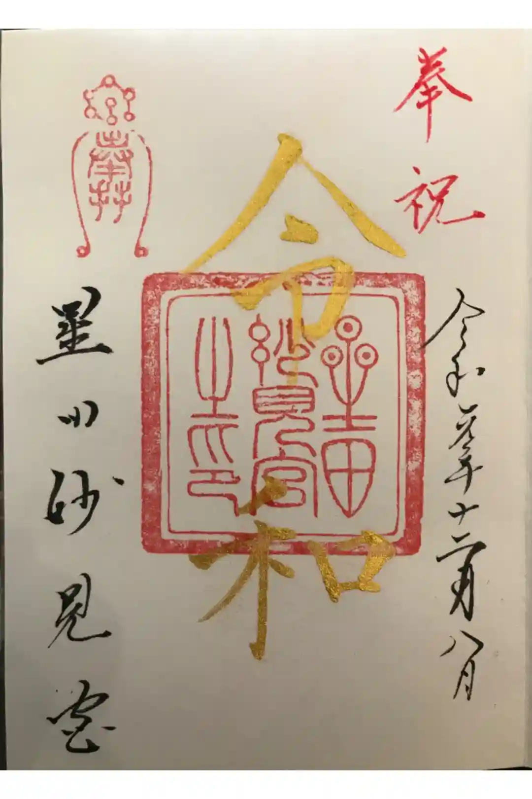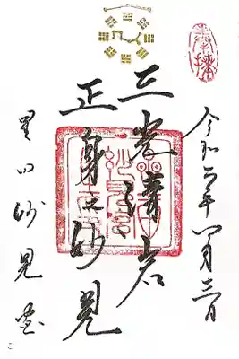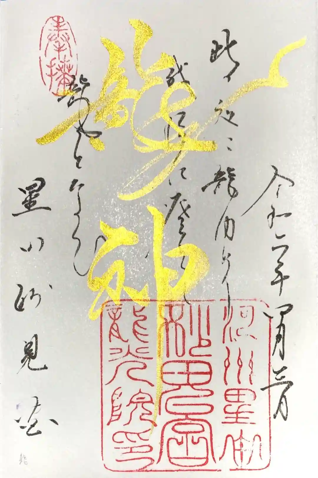 直書き御朱印です。金粉で書かれており、触れば消えてしまいそうな御朱印文字です。