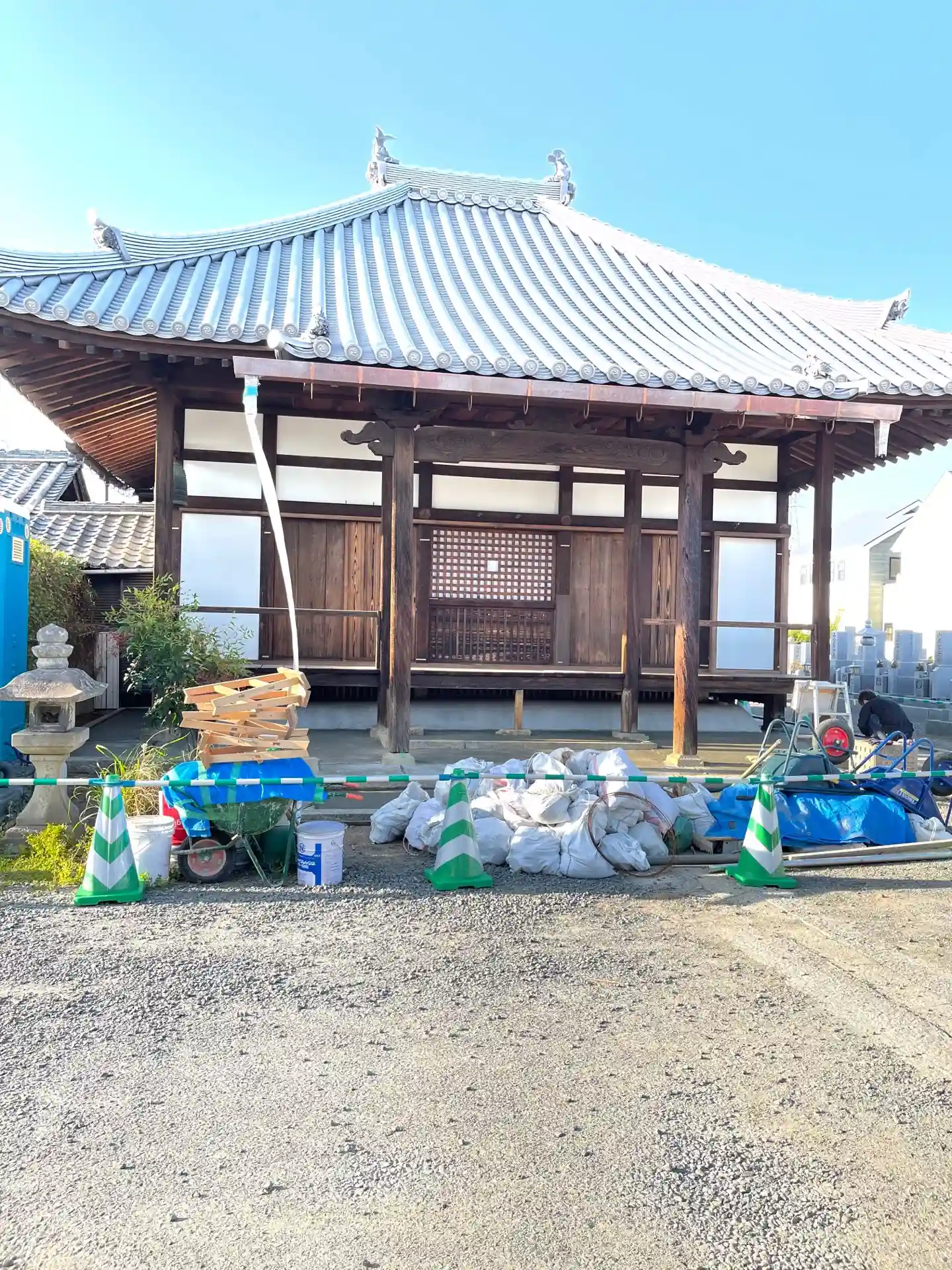 お参り行きましたら、改修工事中で、本堂のそばにはいけませんでした。