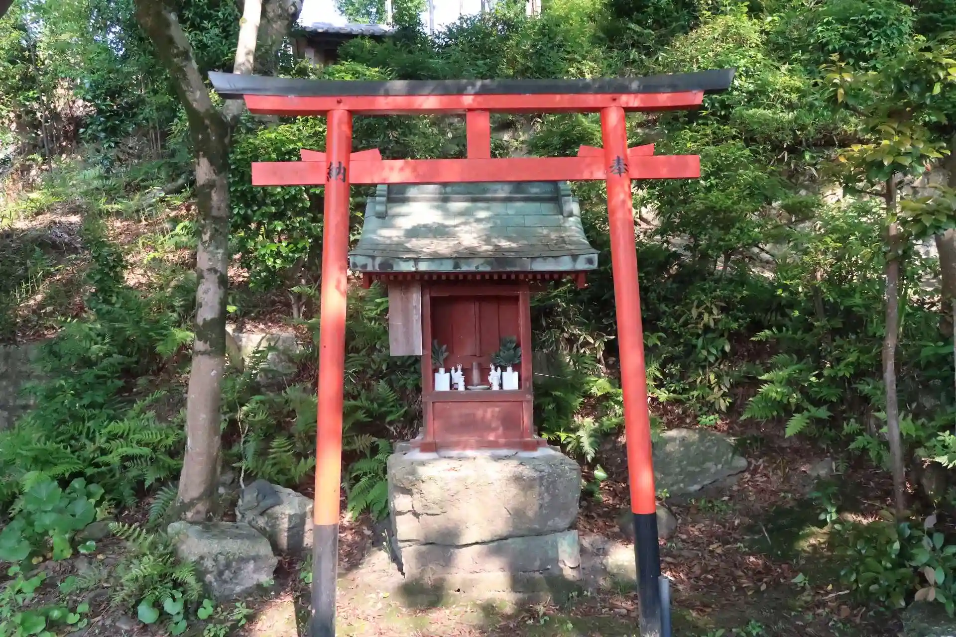 早速観音堂にご案内頂いて、厨子の扉を開けて頂きました。綺麗な仏像ですが、近年の修復を受けており、塗り直しもされているため時代的な事はわかりません。(十一面観音というより千手観音)裏山というか坂を上がって行くと陽石(古代の子孫繁栄のための男根崇拝の石)、その上の高い所に鐘楼がありました。小堂も色々ありました。ご住職は「ここは何でも有りですわ。」と仰有っていました。
