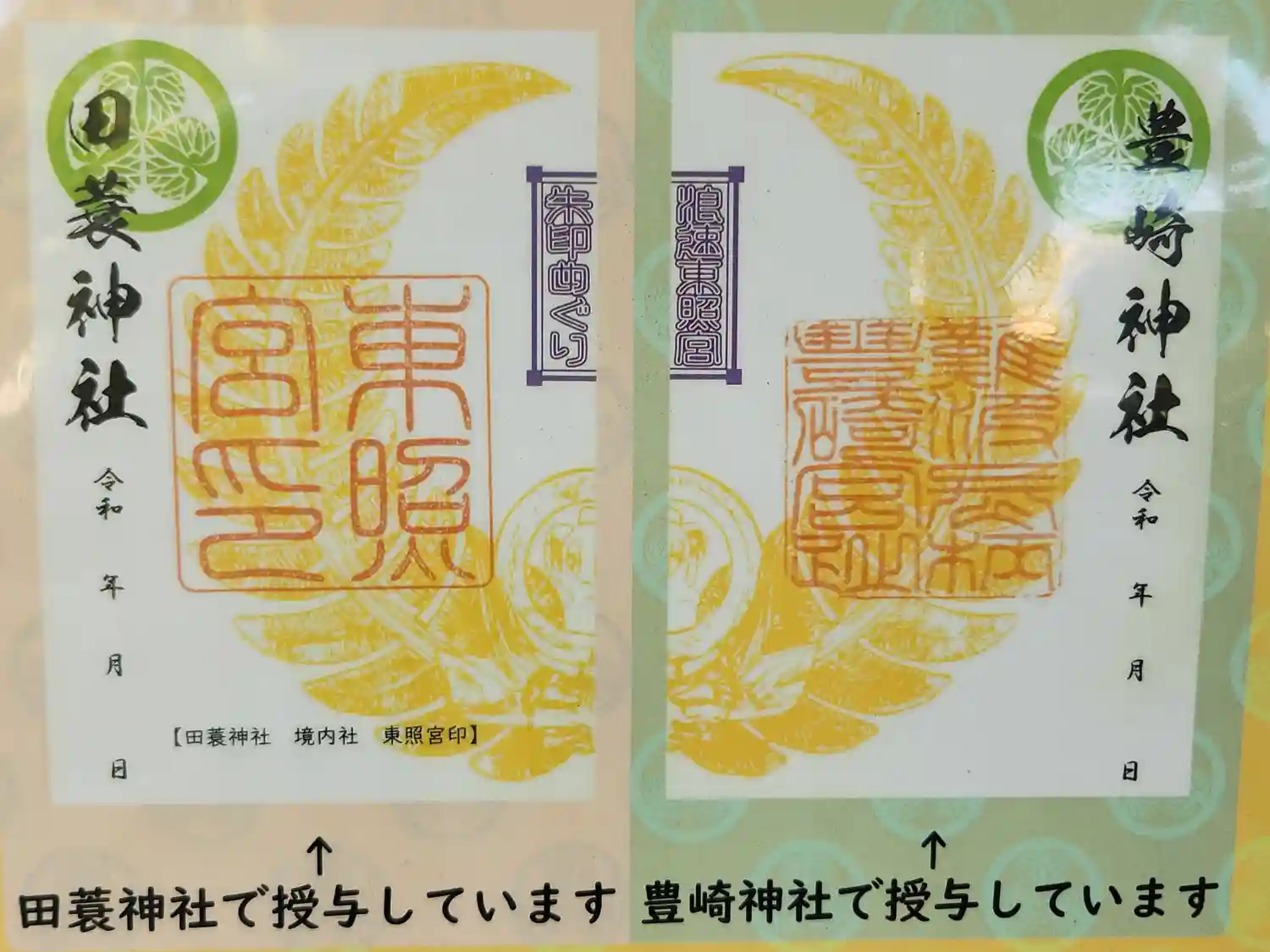 お書き入れ ・本社の御朱印 書置き 東照宮の御朱印