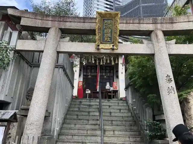阪急梅田駅の近くのビルの間にある神社です。短いですが、急勾配の階段があります。参拝者も多そうで、御朱印も約30分待ちで頂けました。