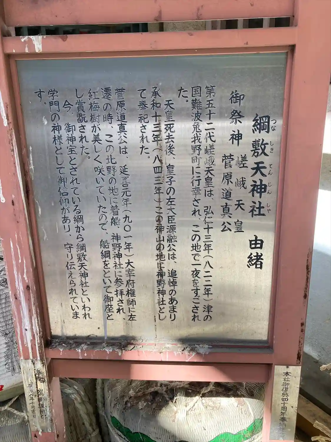 梅田辺りを走り、以前からお詣りしたかった綱敷天神さんにお詣りしました。五十二代嵯峨天皇と菅原道真公…