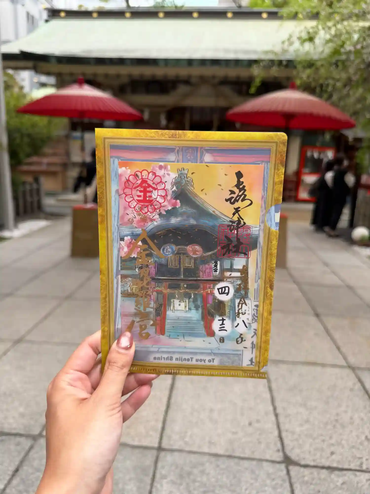 表面に「御朱印帳」「お初天神 露天神社」の文字と上空から見た境内が金色で描かれています。