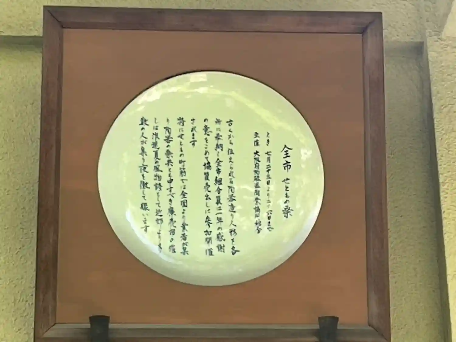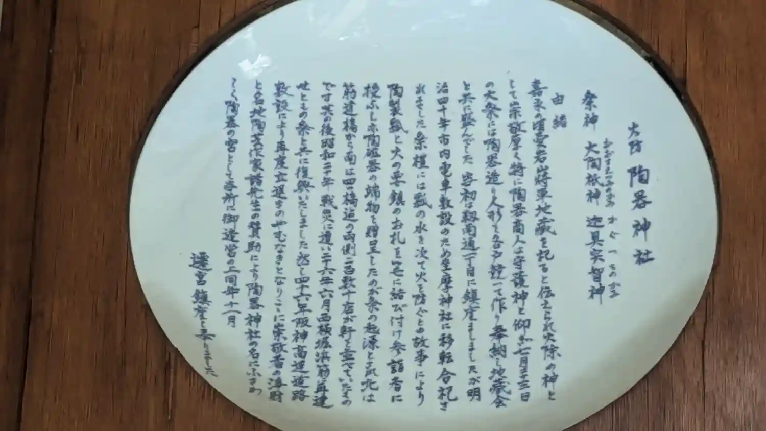 陶器の皿に書かれている由緒書き