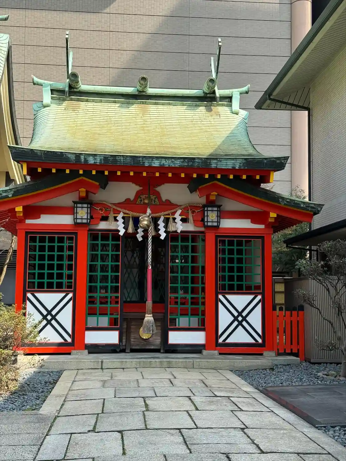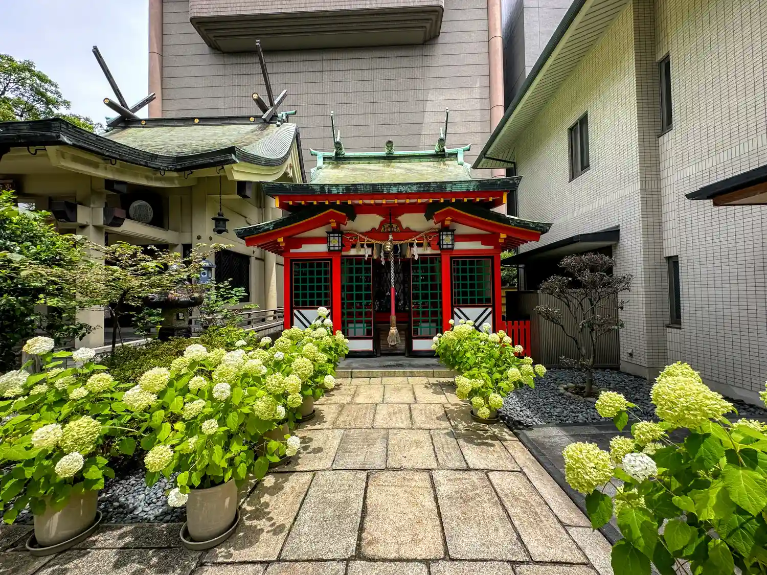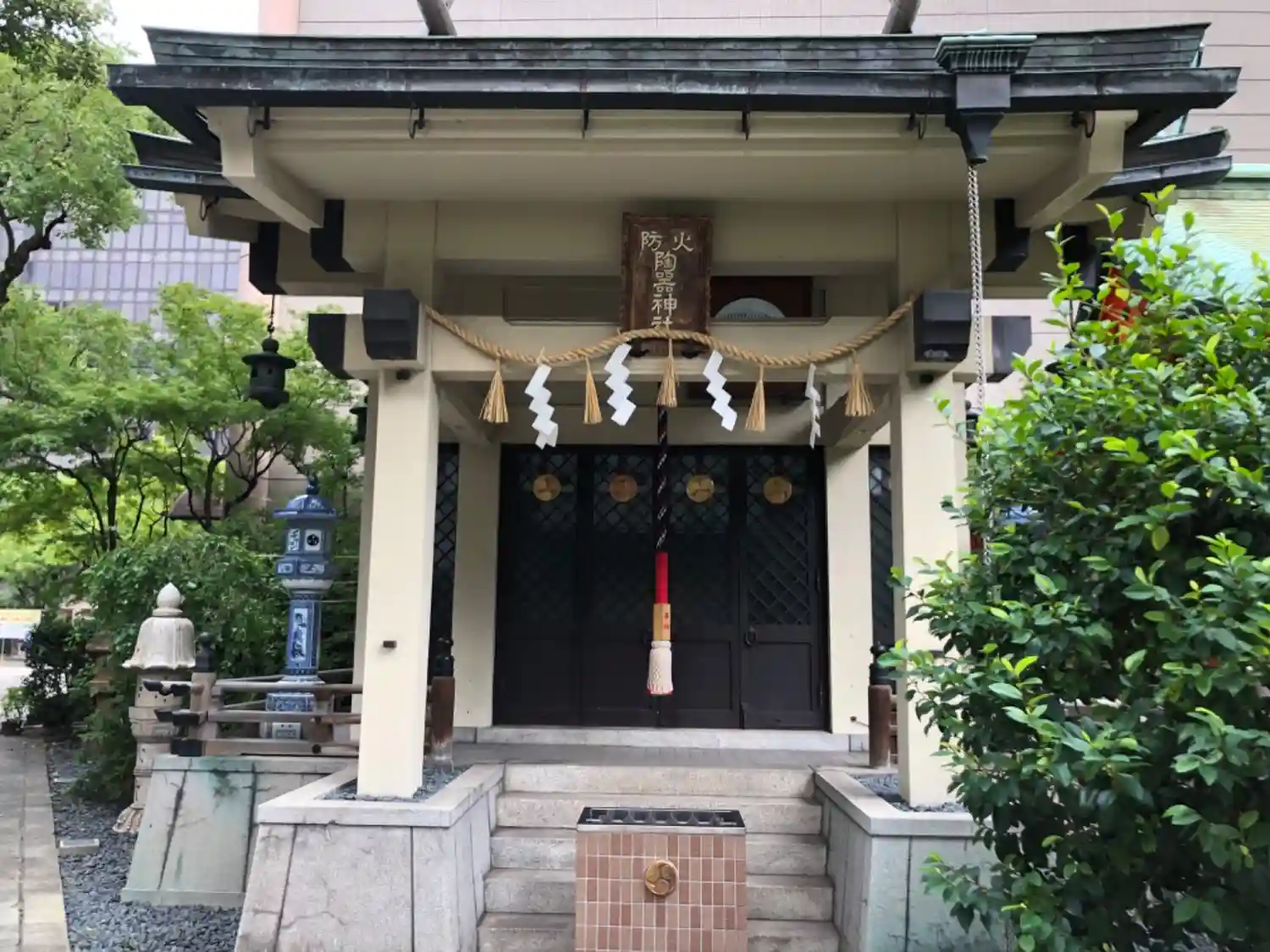 坐摩神社の境内社。社殿はこじんまりとしており、こちらもコンクリート造りです。あちこちに陶器が使われ…