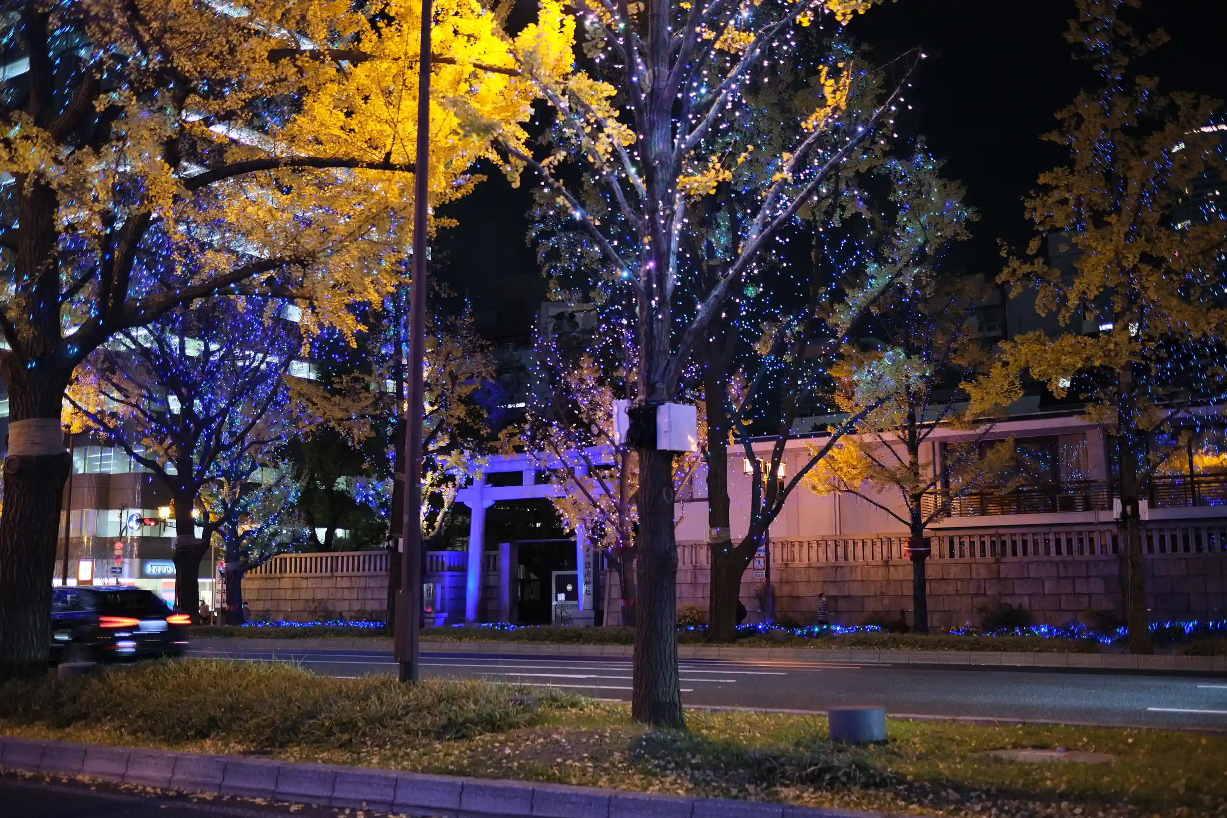 境内から見た御堂筋イルミネーションが綺麗で✨