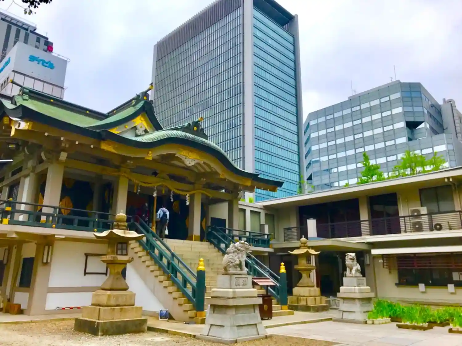 本殿の真後ろに大きなビルが…