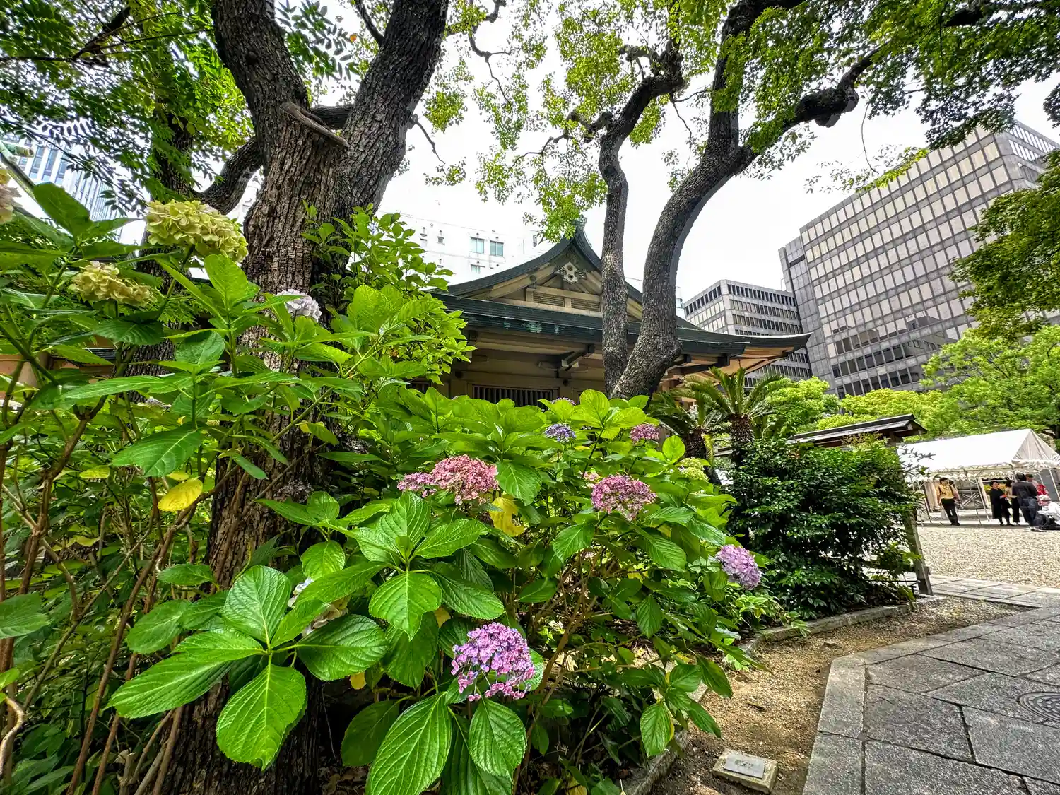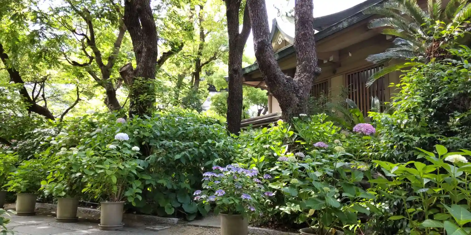 都心部にあってこの時期の境内は紫陽花で埋めつくされてました。