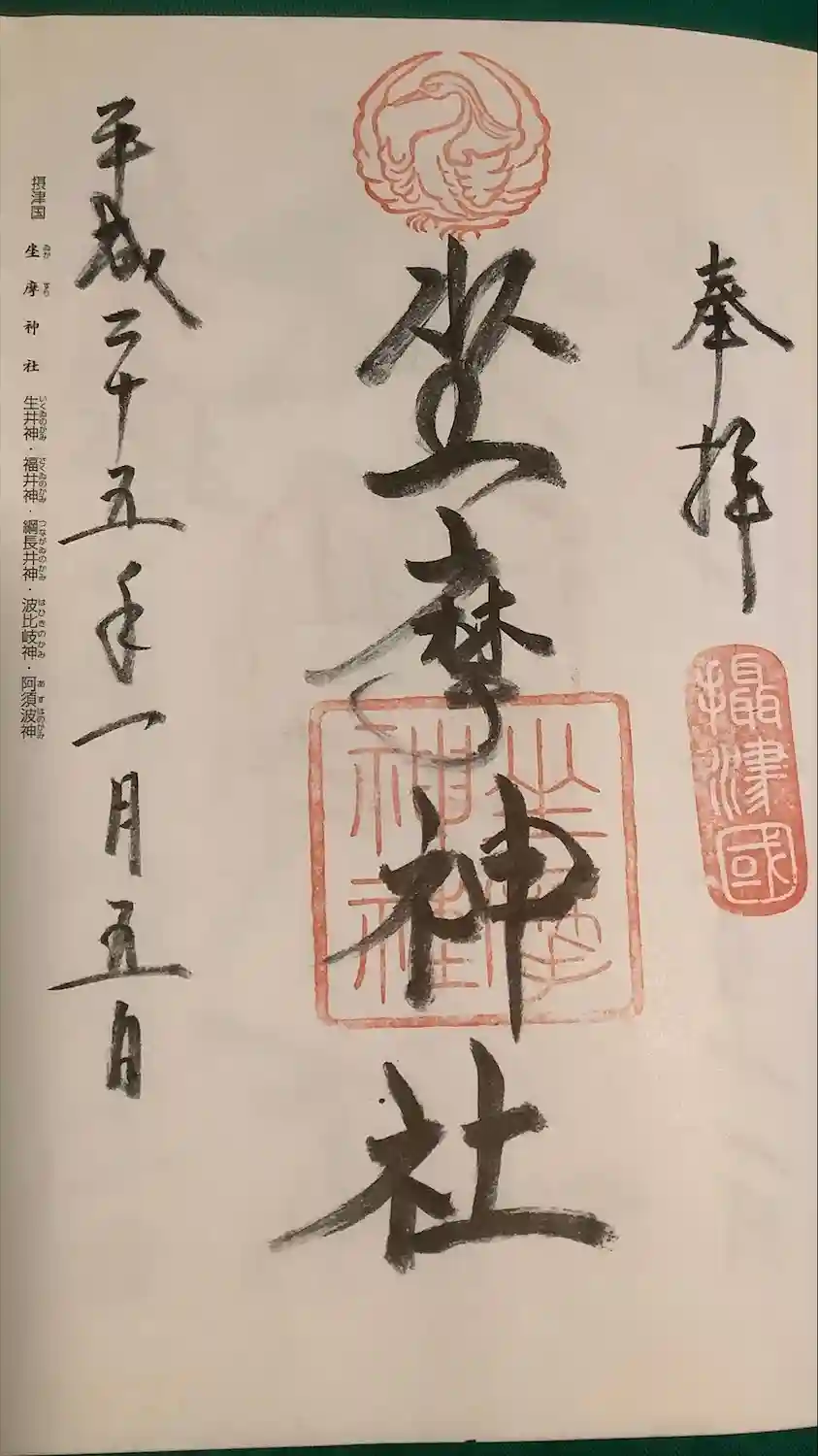 摂津国一宮の坐摩神社さんの御朱印を直書きで拝受。「いかすり」とは読めないですね。この辺りの地名は渡…