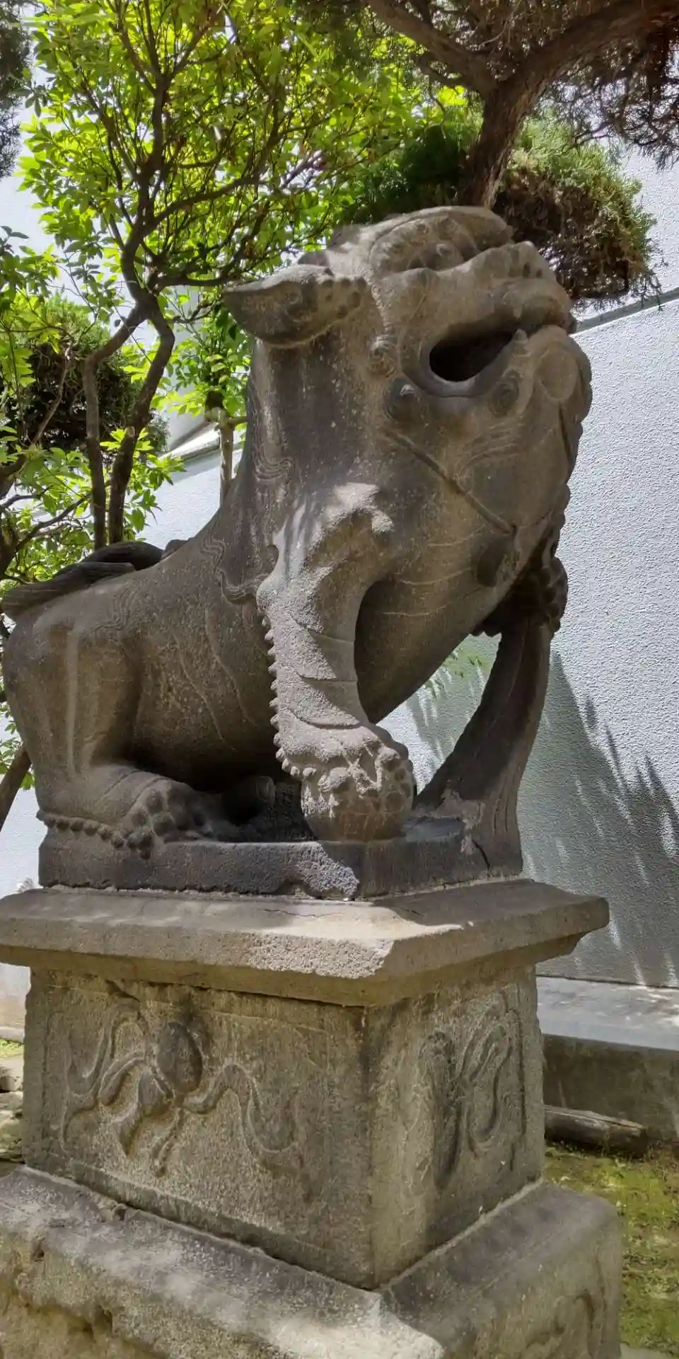 判り辛いかもしれませんが、こちらの狛犬は口内に勾玉が収められてます