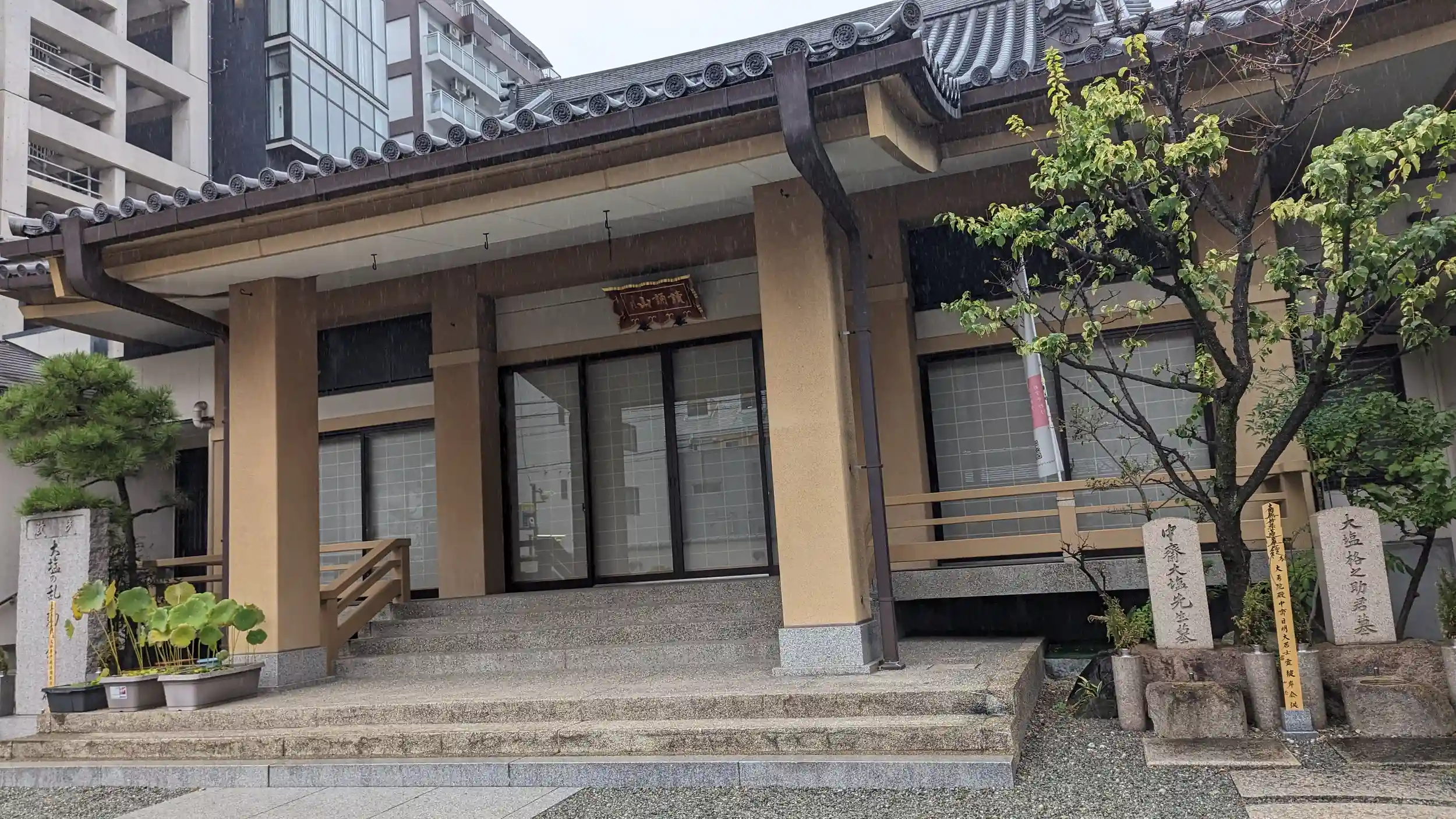 妙福寺さんの近く。大塩平八郎の墓所との石柱があり、本堂脇に大塩平八郎と養子・格之助の墓石、大塩の乱の殉没者慰霊碑がありました。こちらもご不在・・・😭