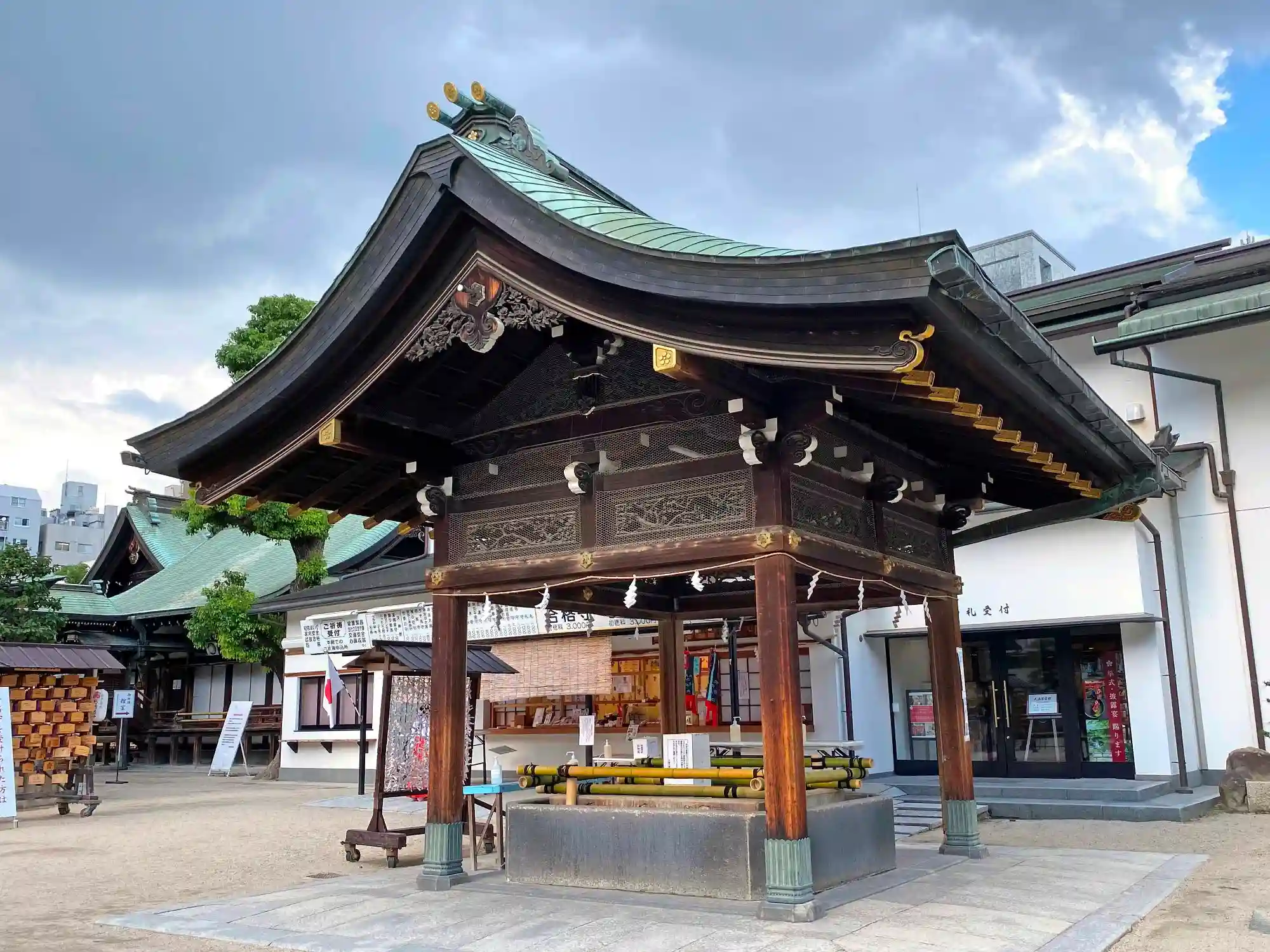 表大門をくぐり、拝殿に向かう参道右手にある<手水舎>。