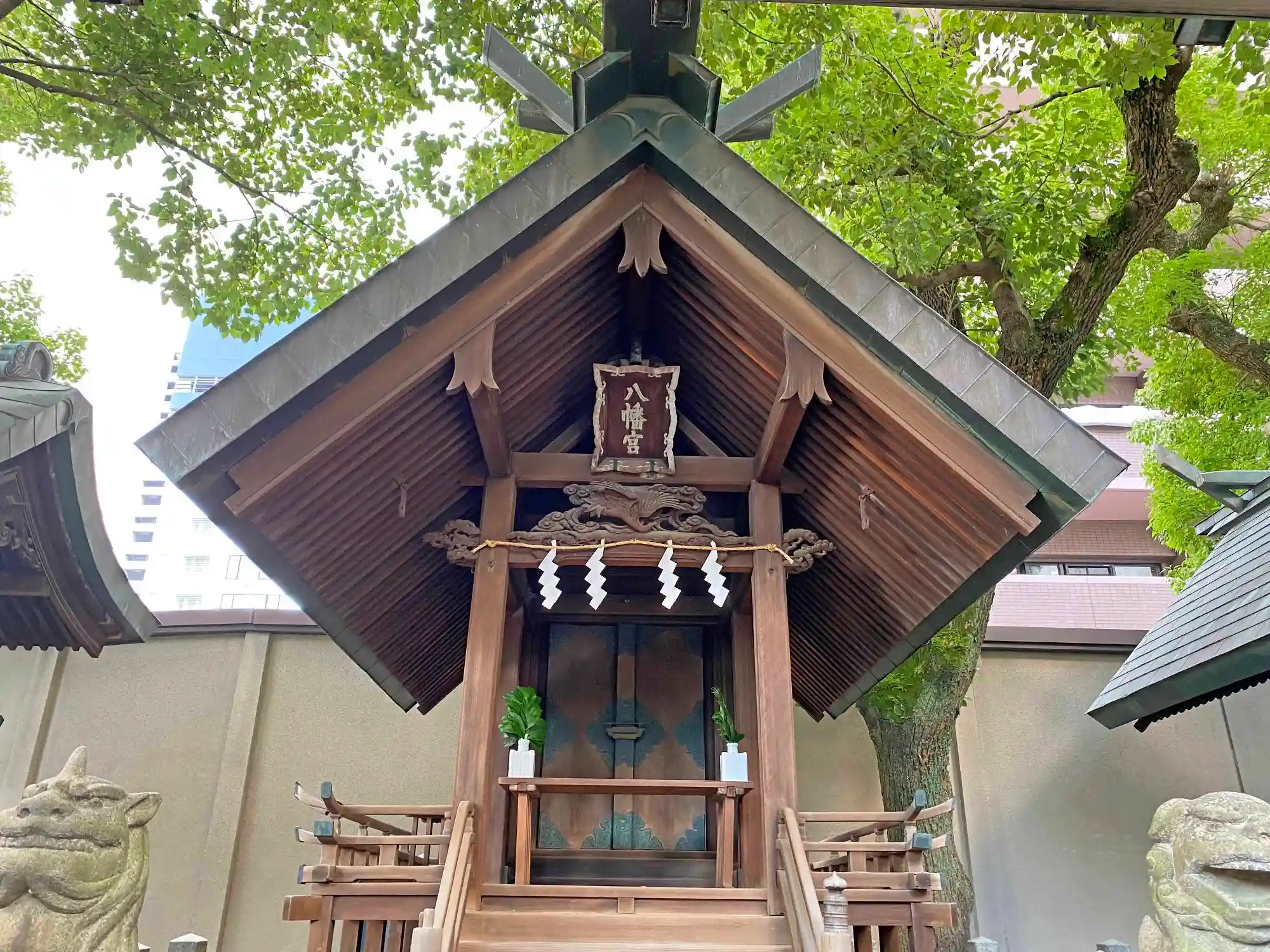 蛭子門を入って左側にある<老松神社紅梅殿>と<白太夫社>。