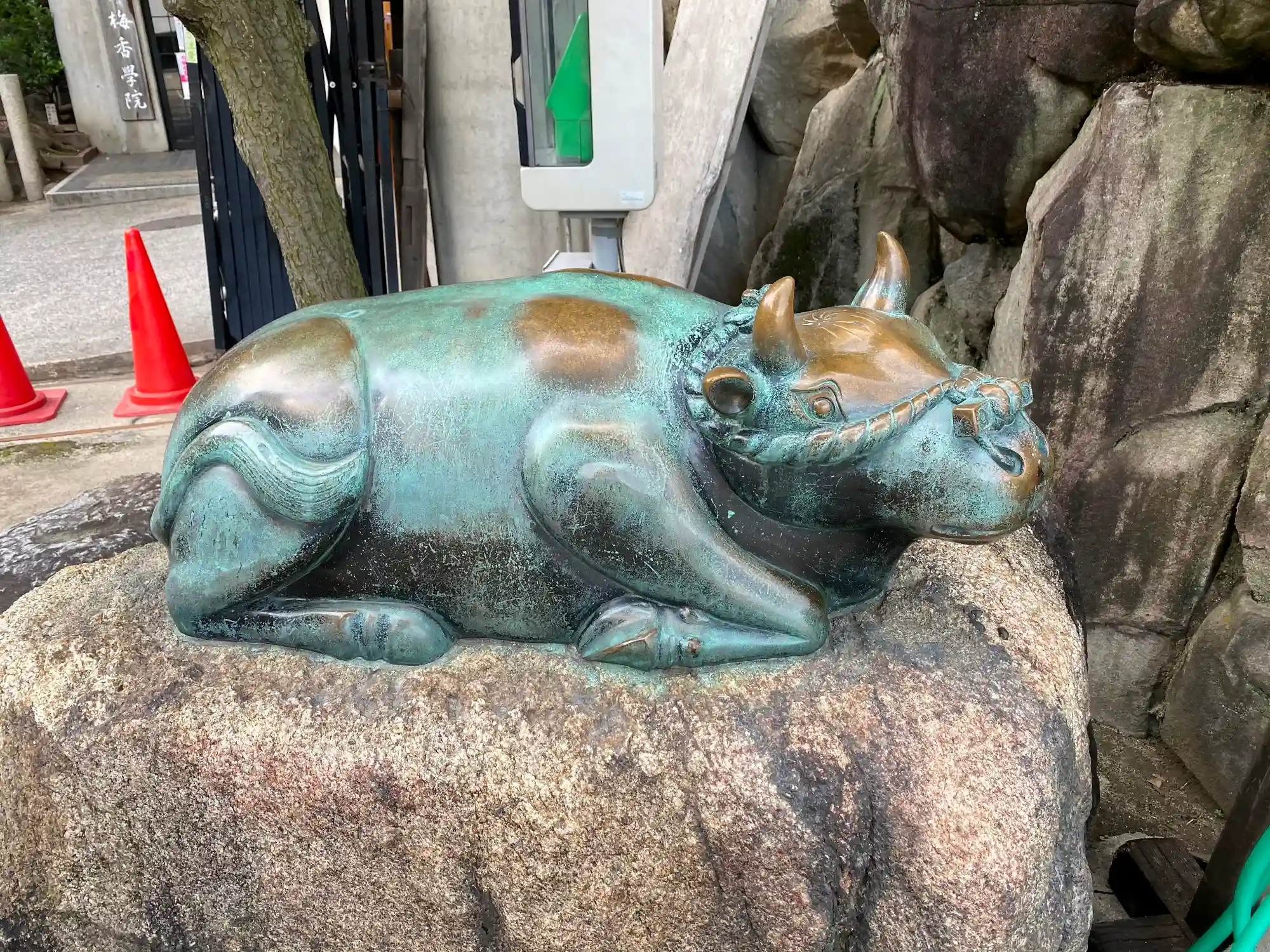 梅香学院の前にある<撫で牛>。