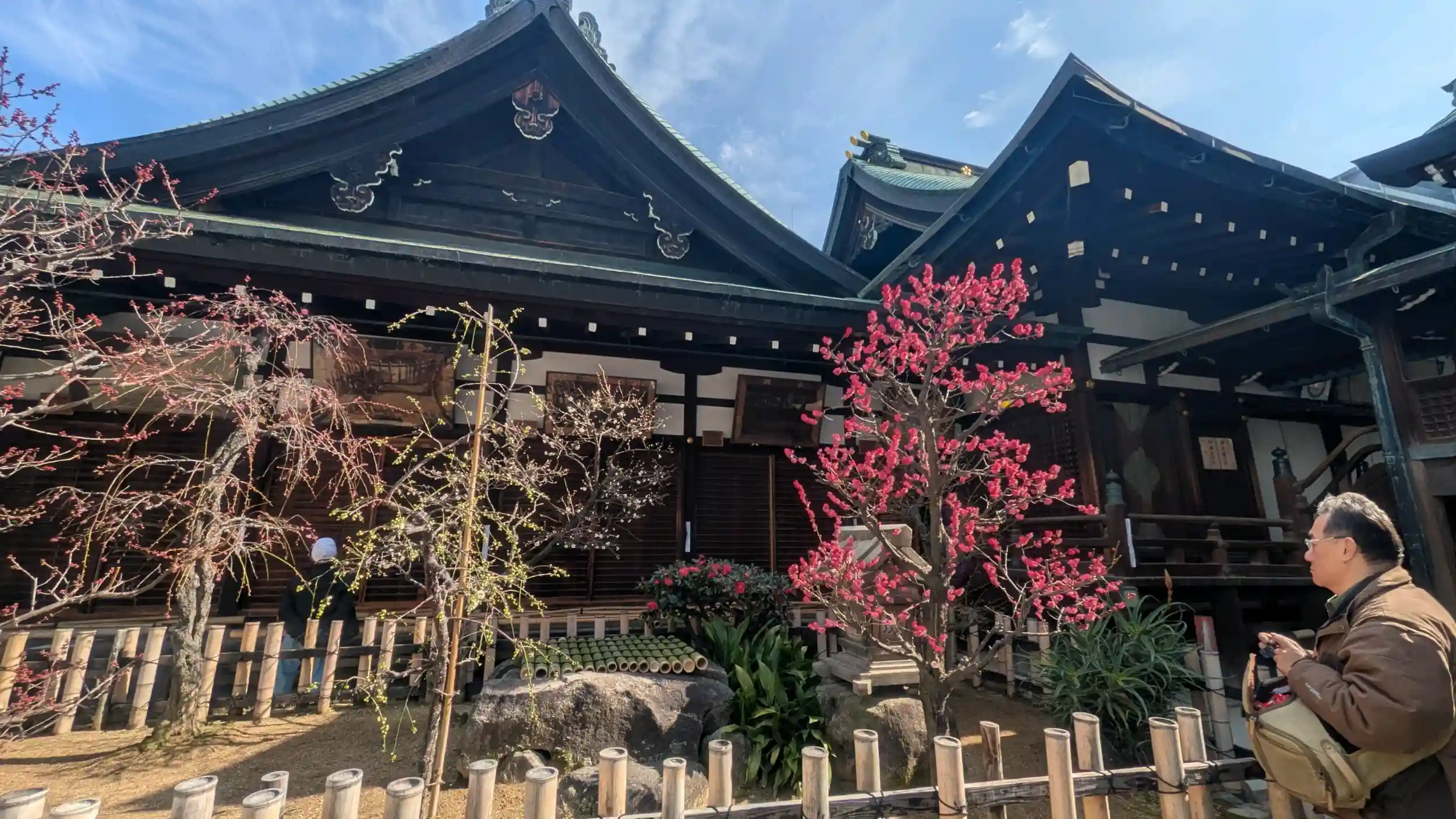 徒歩20分くらいかけて移動 何と屋根の葺き替え工事中 全然どんな神社だったのか分かりませんでした さすが学問の神様を祀っているだけあります 受験シーズン真っ只中 合格祈願のお参りが多かったように思います 境内で露店があったり 猿回しのイベントやっていました