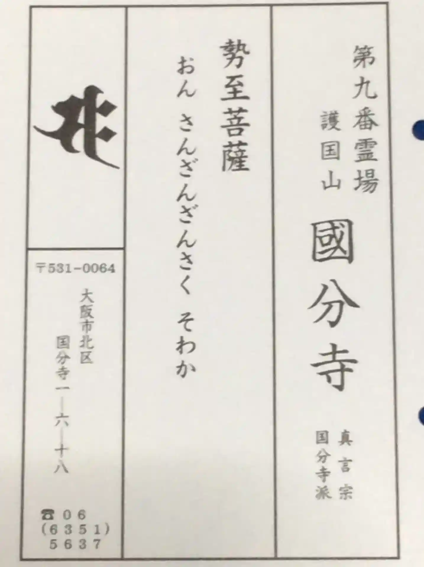 足跡🐾「おおさか十三佛霊場 第九番霊場 勢至菩薩」