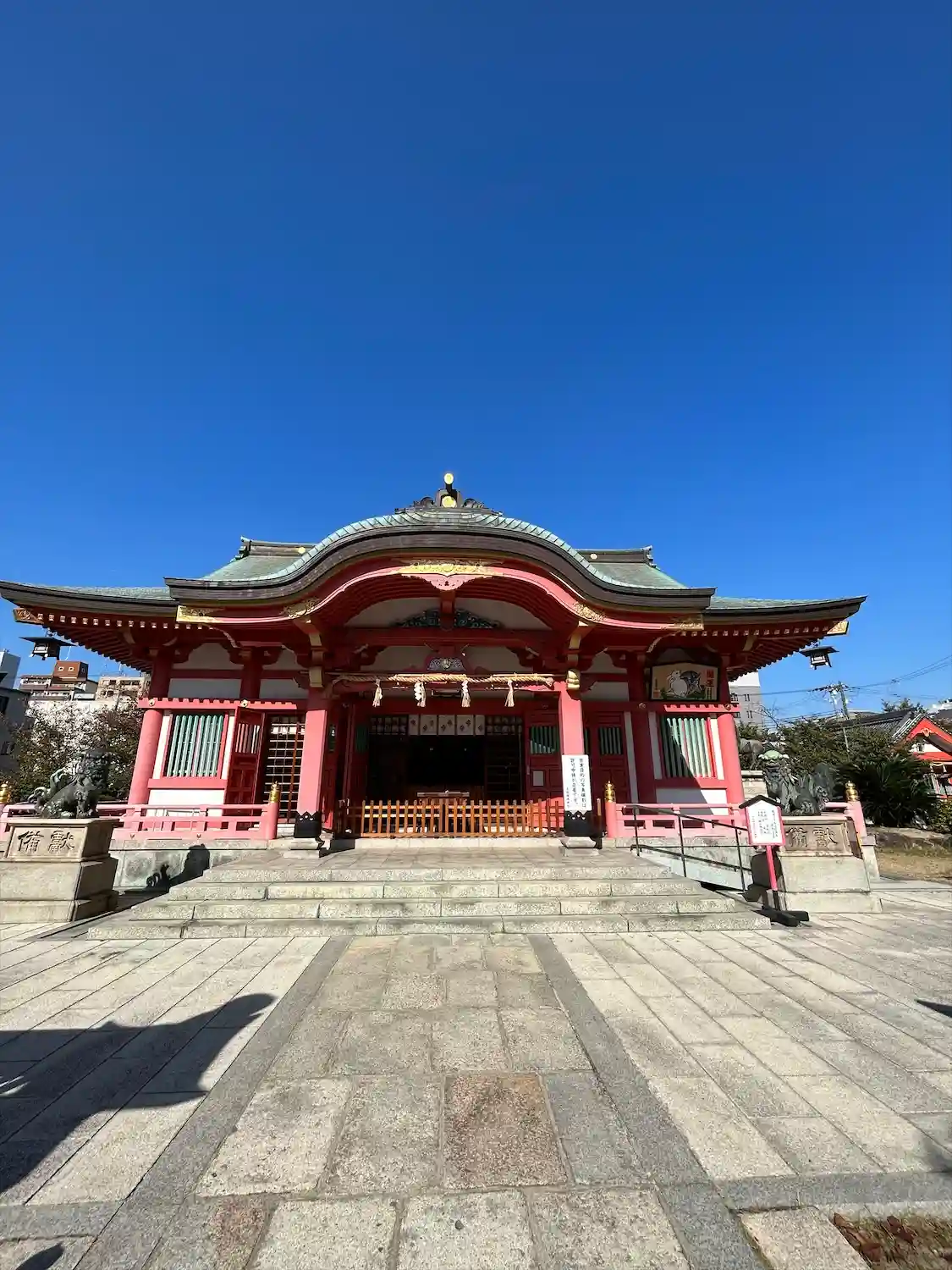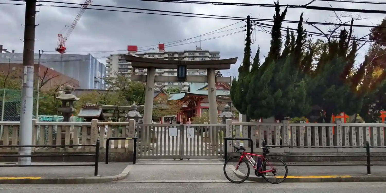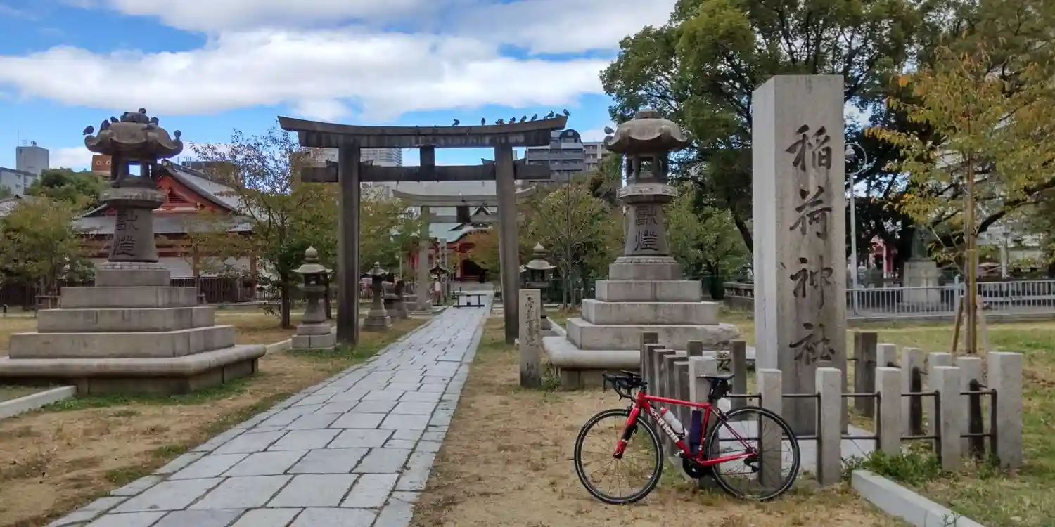 靭公園から堀江に走って巡り会ったお稲荷さんです。境内が広く社殿も色鮮やかな神社です!たくさんの境内…