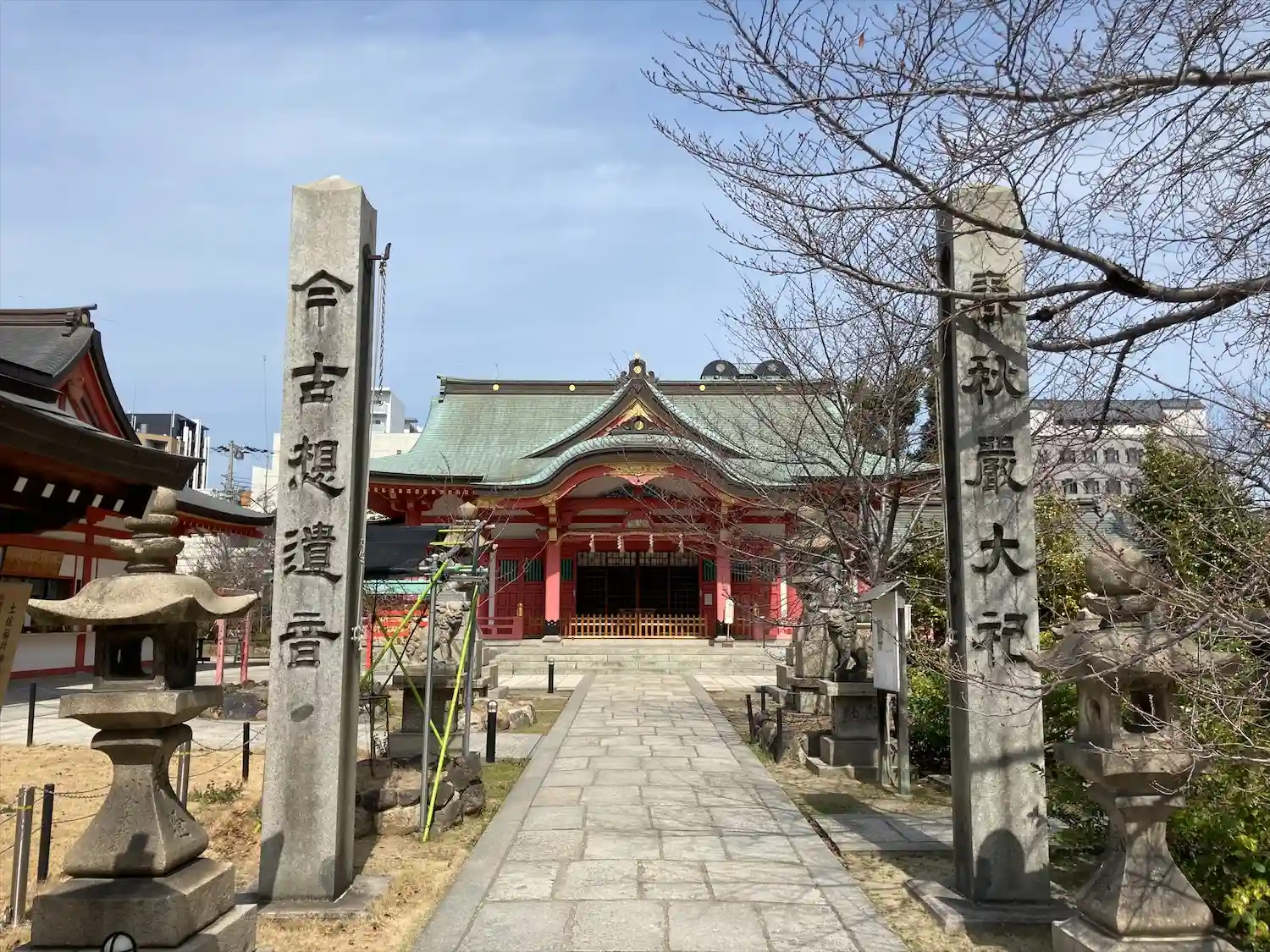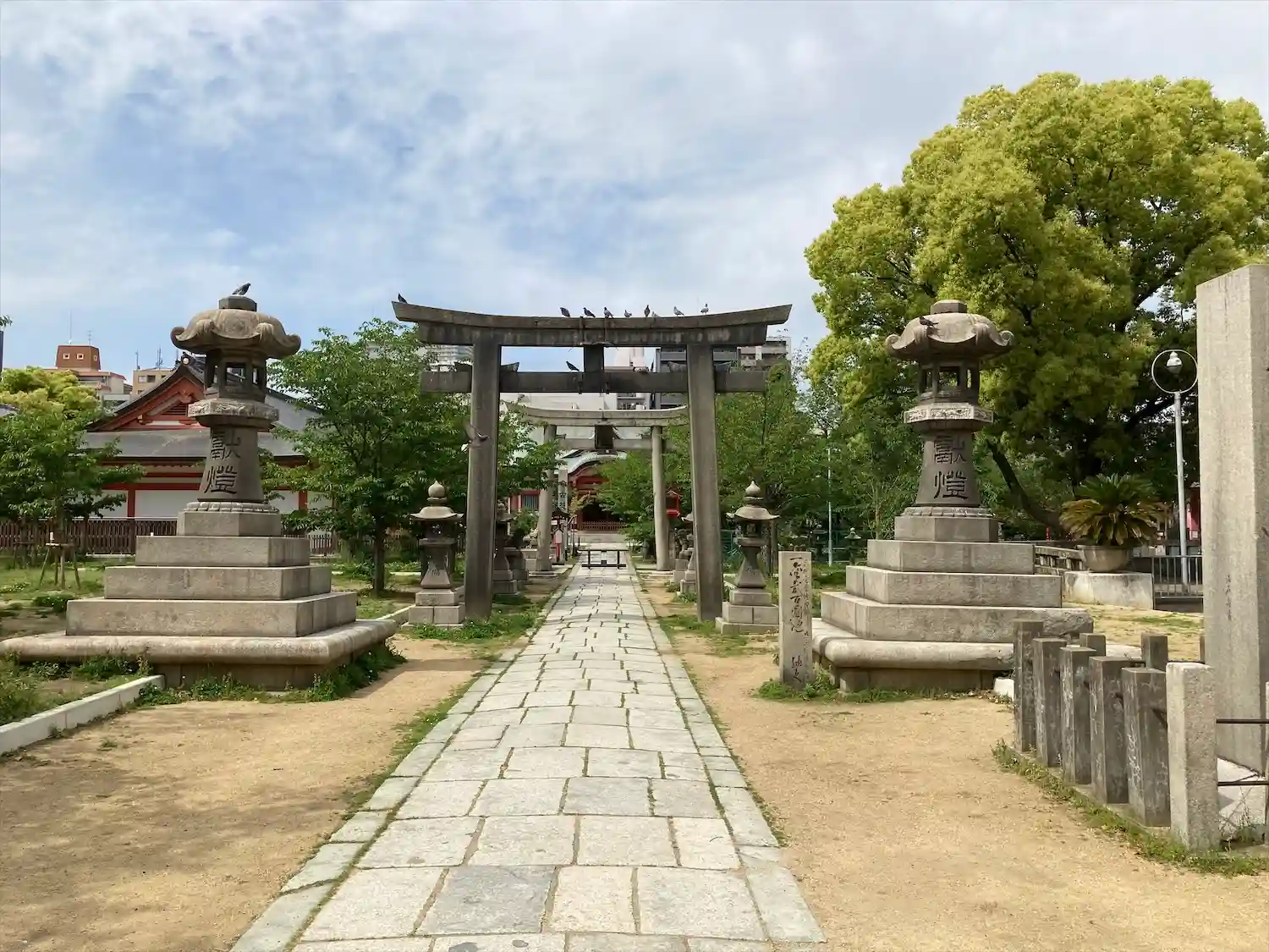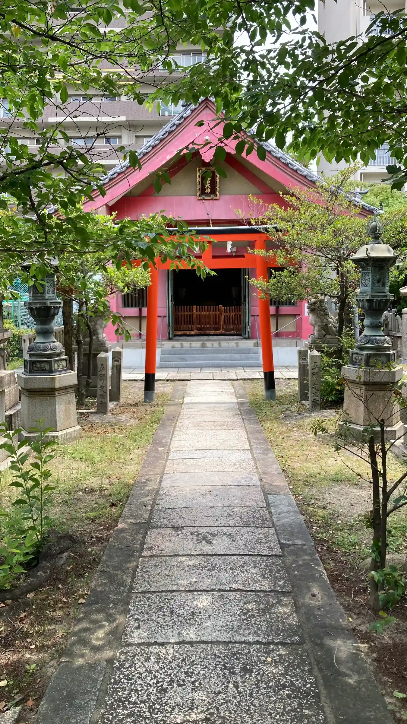 靭公園から堀江に走って巡り会ったお稲荷さんです。境内が広く社殿も色鮮やかな神社です!たくさんの境内…