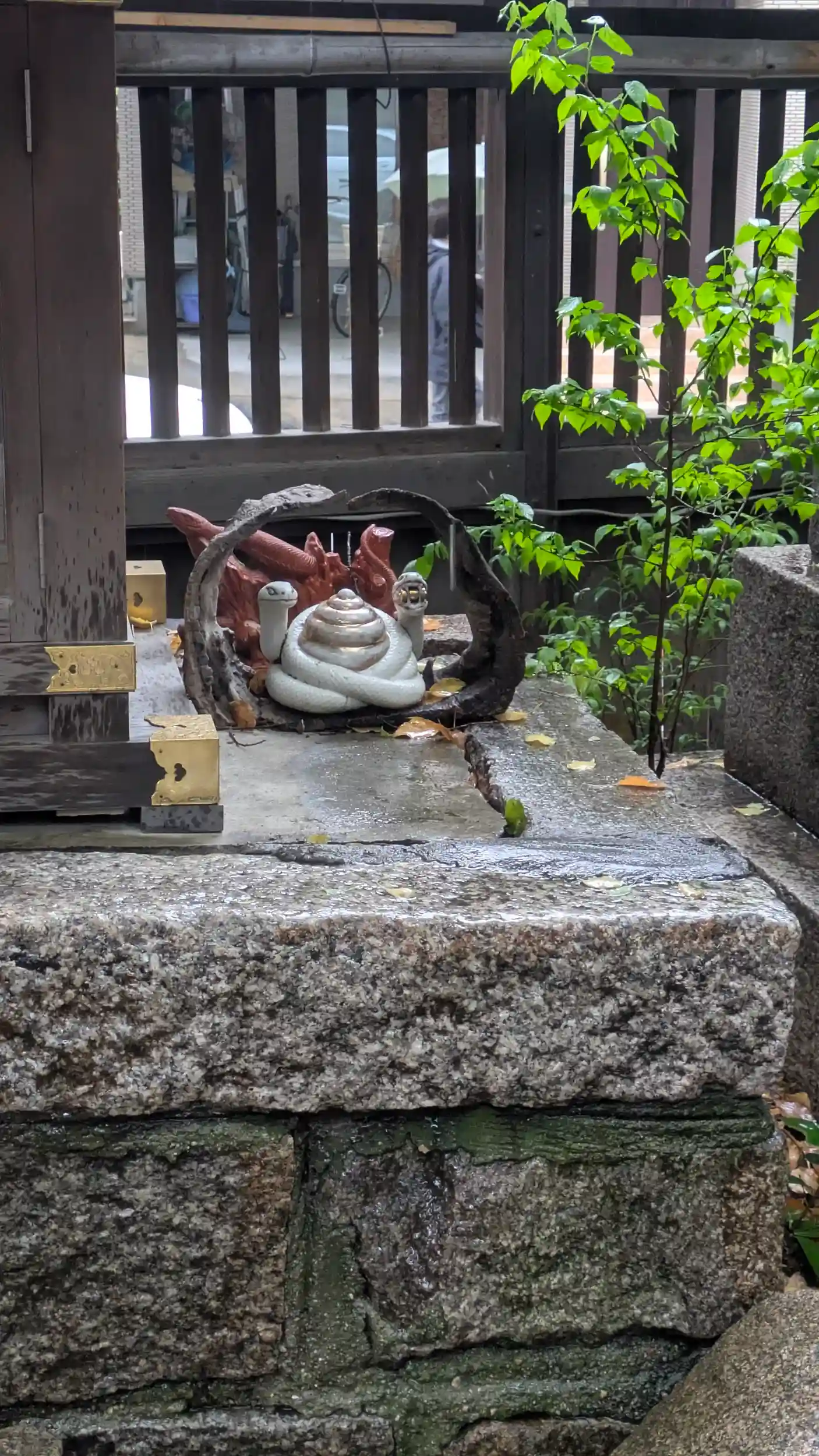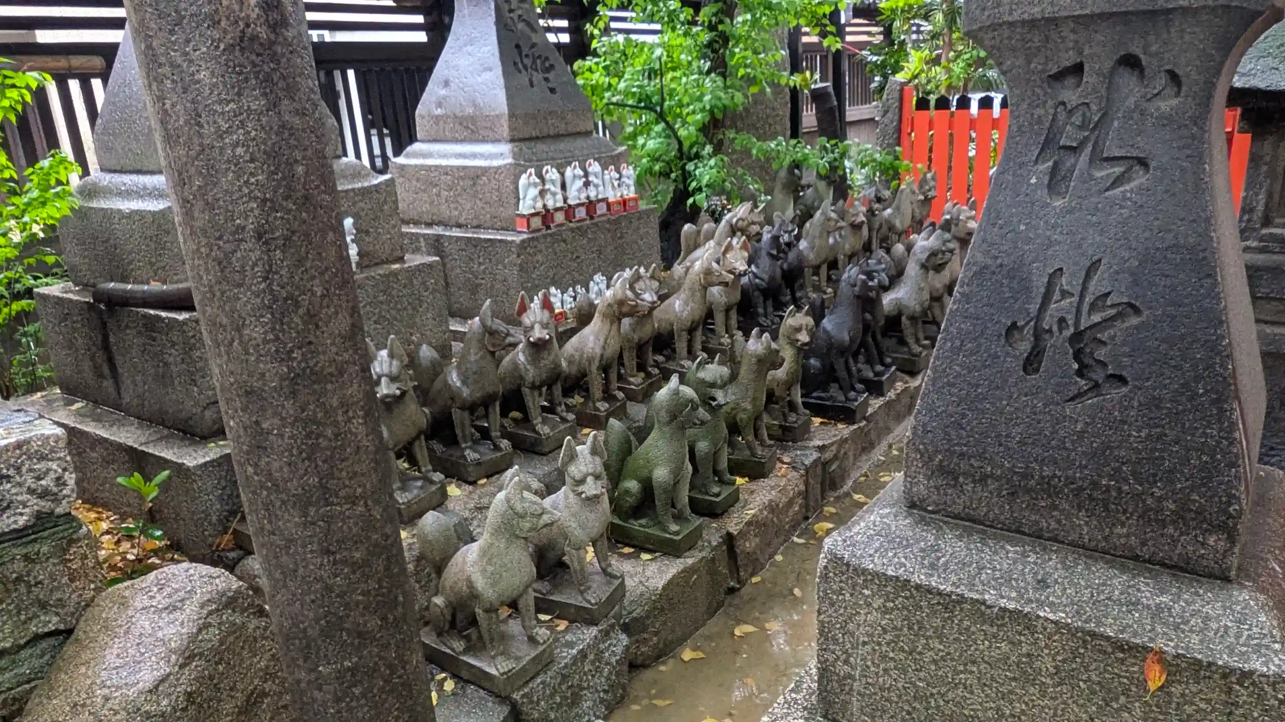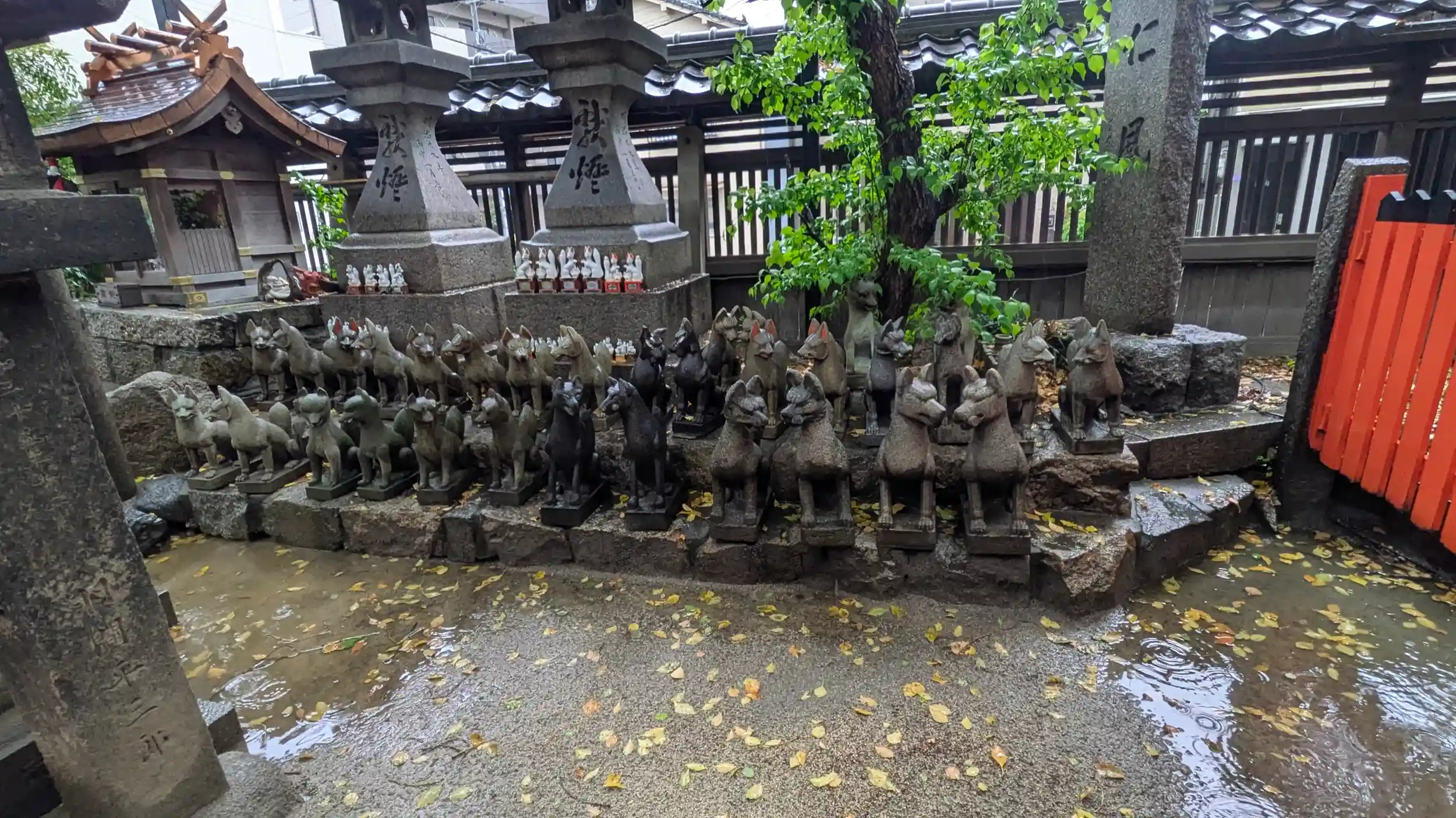 海老江八坂神社へ到着。雨は弱まる気配もなく、足早にお詣り。本殿お参りして稲荷社へ。豊里稲荷とのことで社殿とこには計14ペアの命婦さん😲なかなかの数だと思う反面、廃社となった稲荷社からこちらに遷されたんでしょうかね・・・😥そう考えるとちょっと悲しい部分もありますが・・・。もとは牛頭天王社だったのでしょうからその名残でかお不動さんもおられました。その隣には「西成大橋」の石碑。福島区に西成・・・?なぜ?社務所ご不在でしたので詳細はわからずです。また天気の良いときにでも再訪したいですね😅