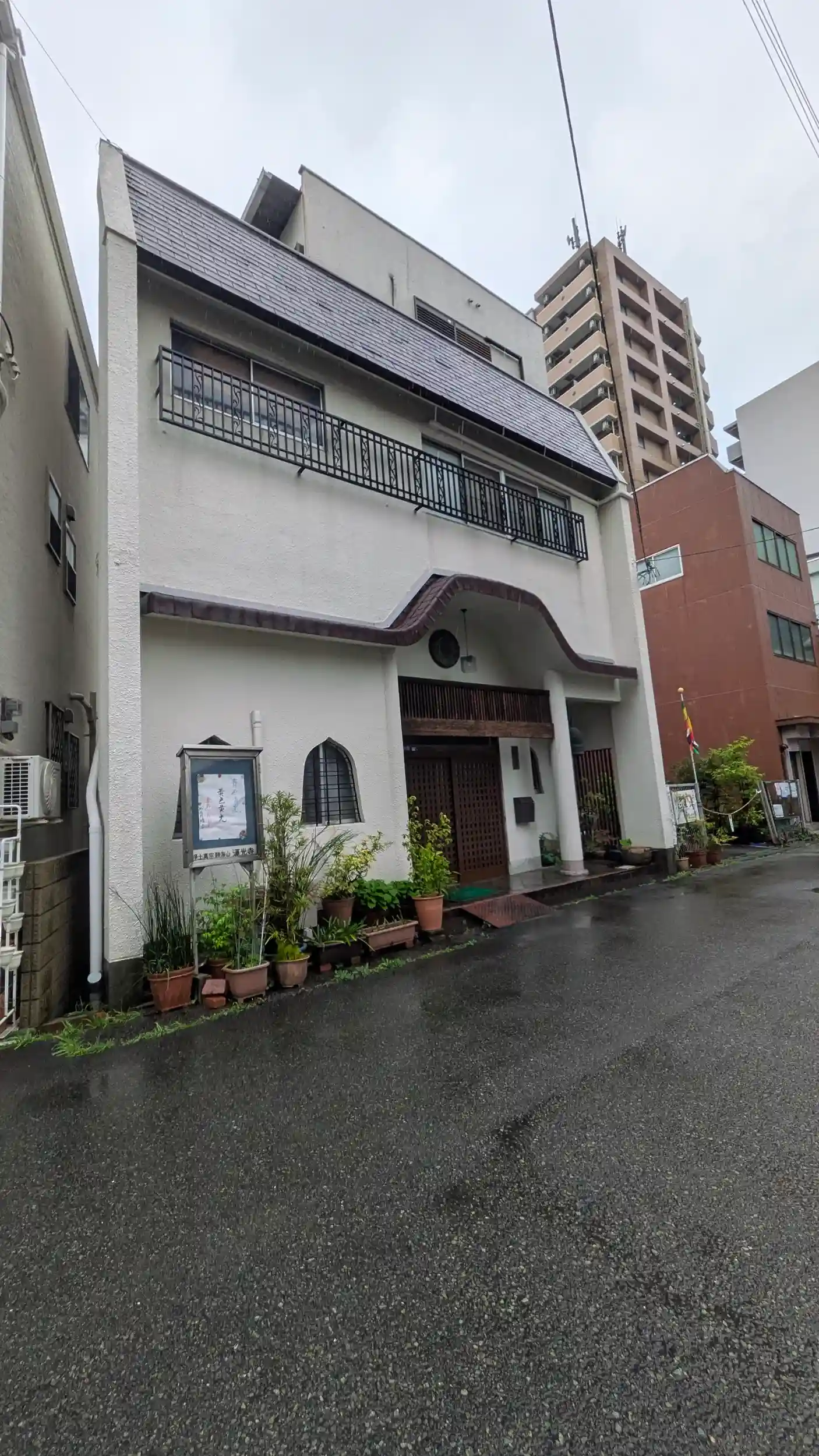 国道2号線を渡り、真宗の蓮光寺へ。大阪あるあるの民家とお寺の合体型寺院。玄関や窓が寺院風に作られているのがなんとも・・・😅例のごとく情報見当たらずでした。門(玄関)前でお詣りです。