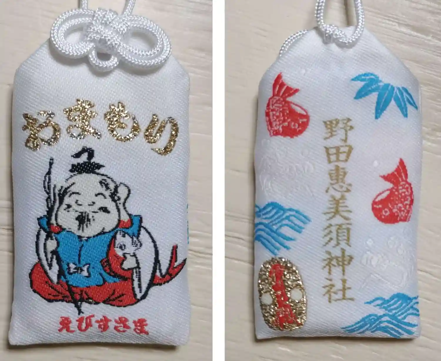 えびすさまのお守りを拝受しました。他にも色々なお守りがあります。