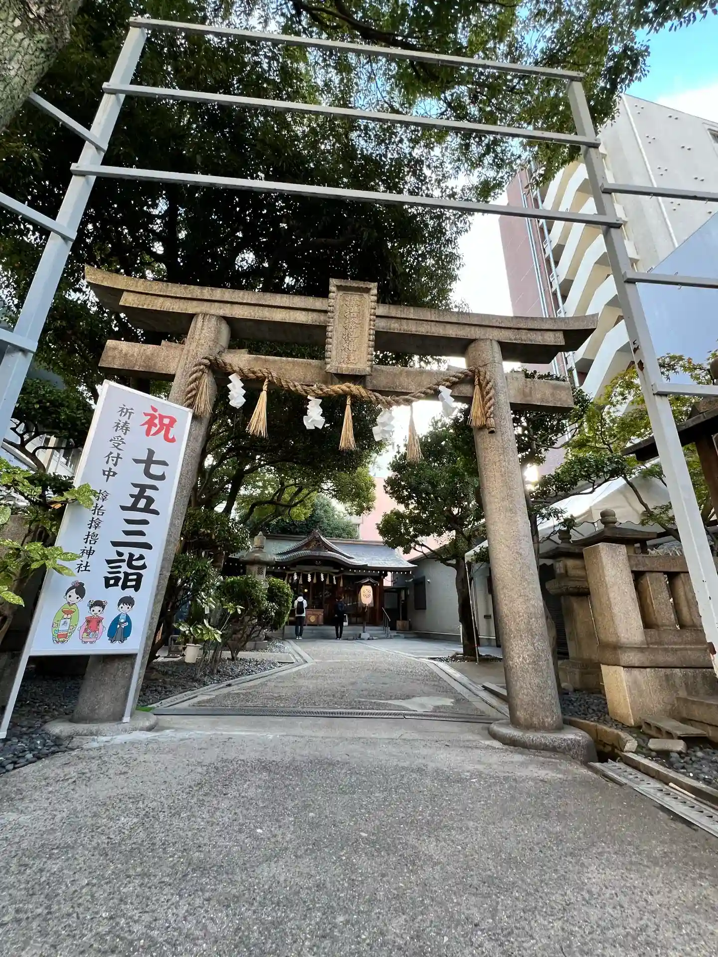 大阪市の賑やかな市街地にある小さな神社です。