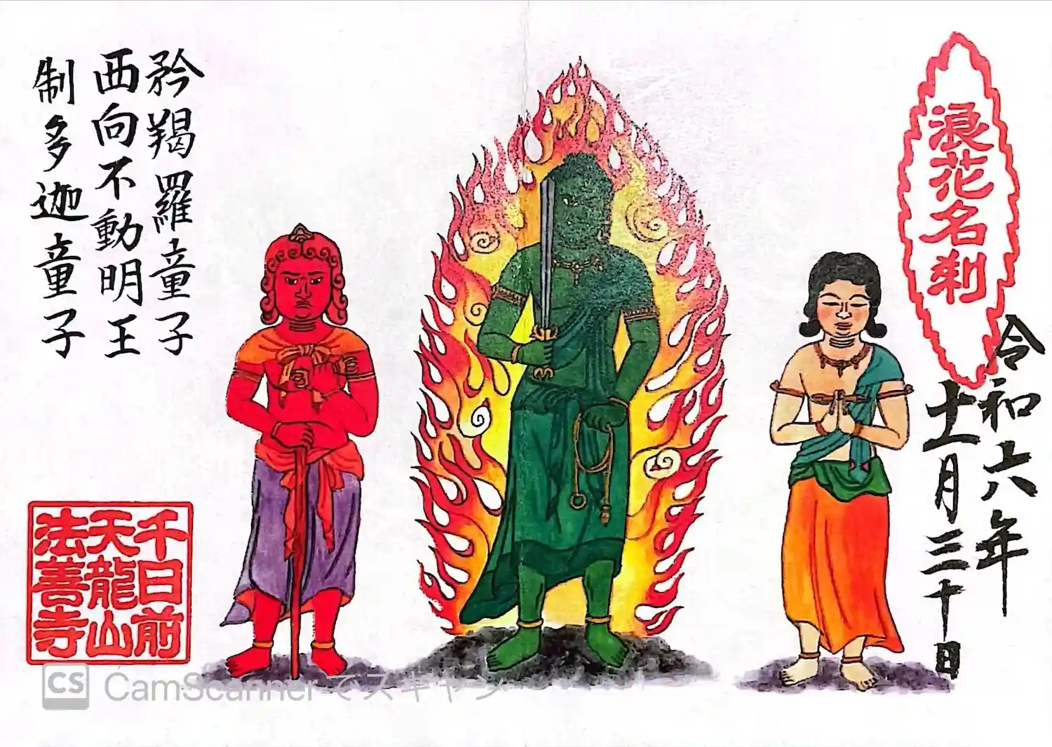 法善寺〜水掛不動尊(西向不動尊)と左右の制多迦童子・矜羯羅童子の御朱印 2つ折