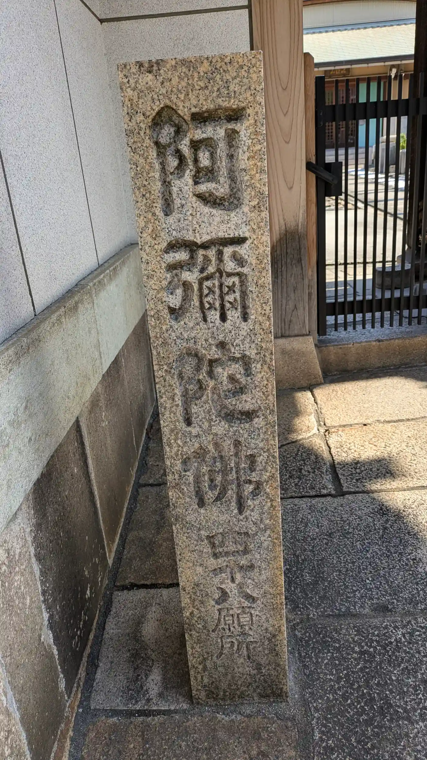 大阪新四十八願所阿彌陀巡禮第47番。なかなかユニークな形の本堂😊ガラス越しに阿弥陀様をお参り。ご住職が不在のためこちらも書置きをいただきました。扁額の山号が読めない・・・😅