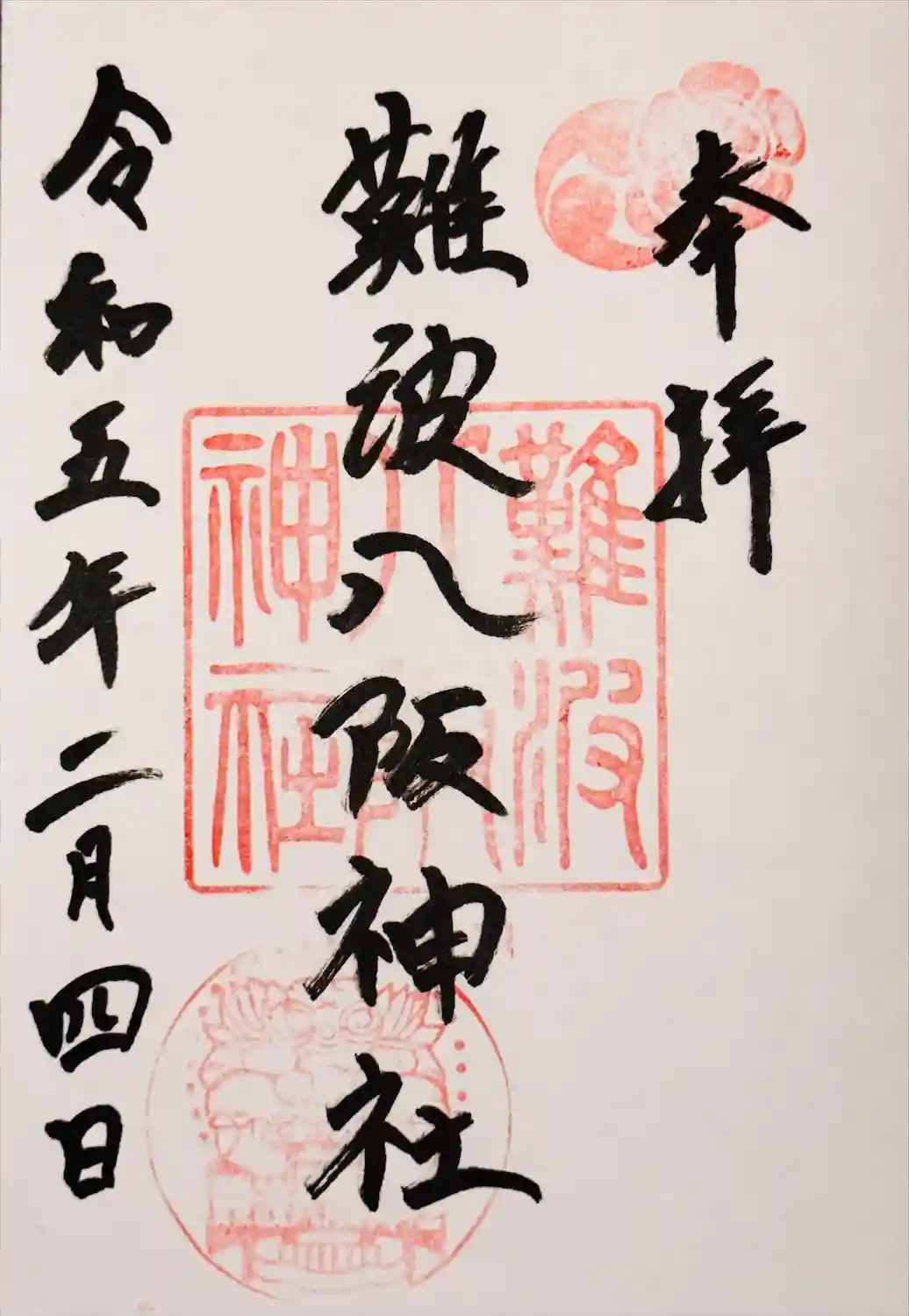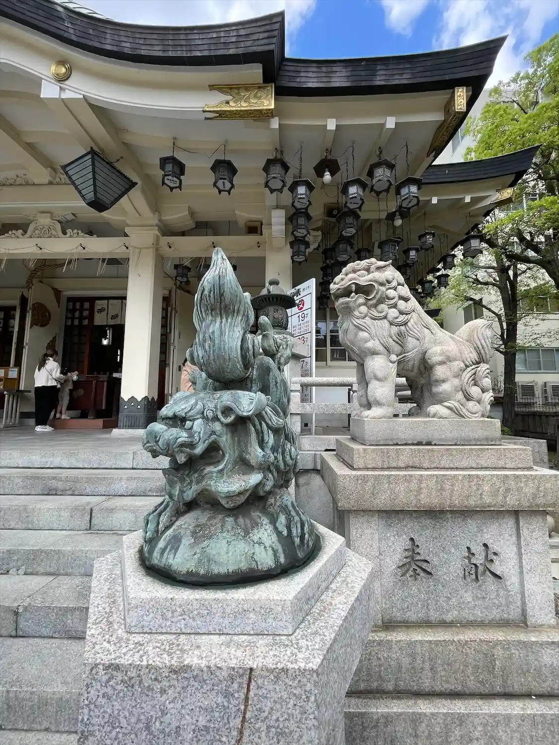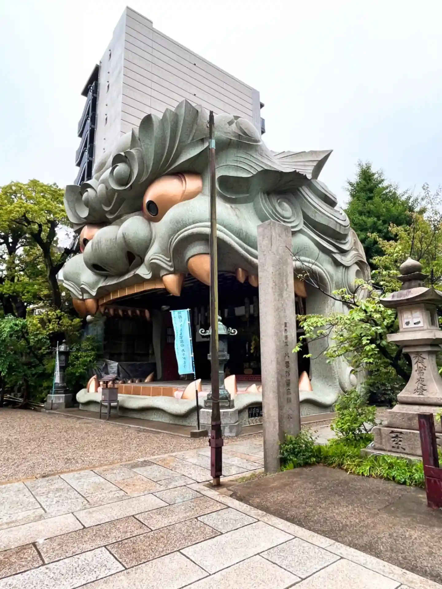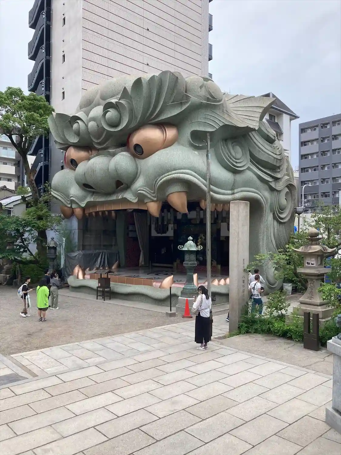 難波八阪神社さんの御朱印を書置きで拝受。こんな大きな狛犬がいるとはほぼ観光地化しとりますね。