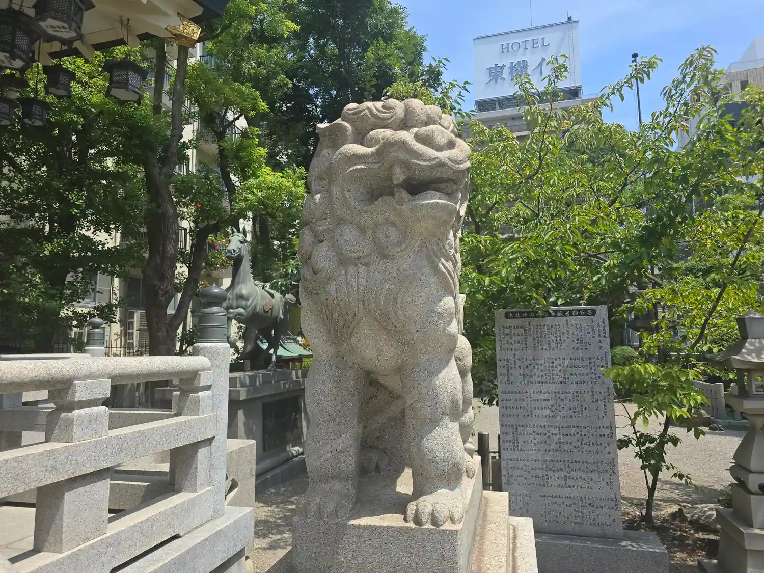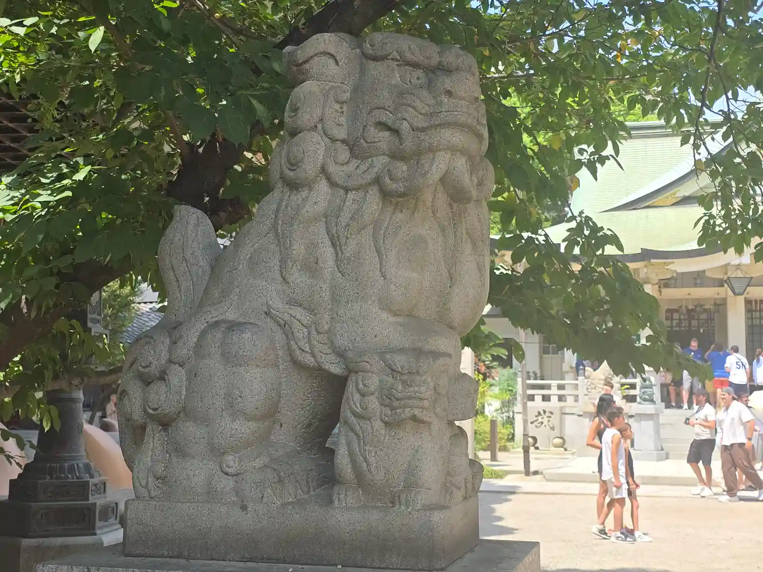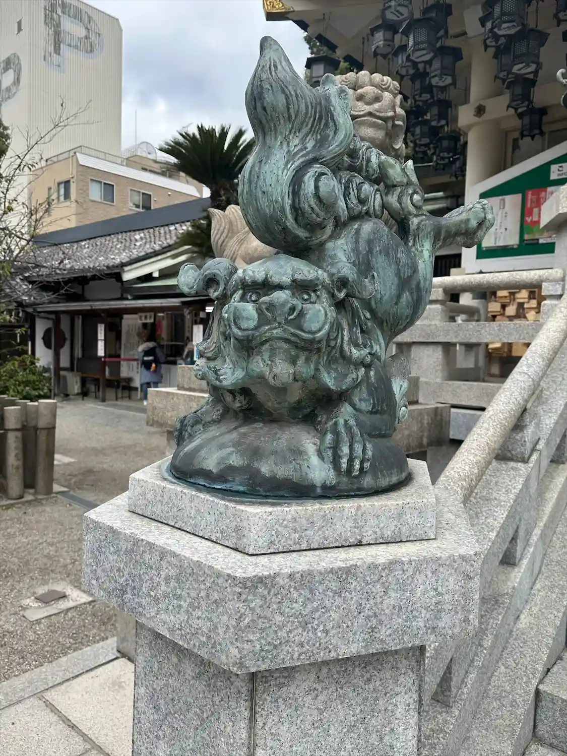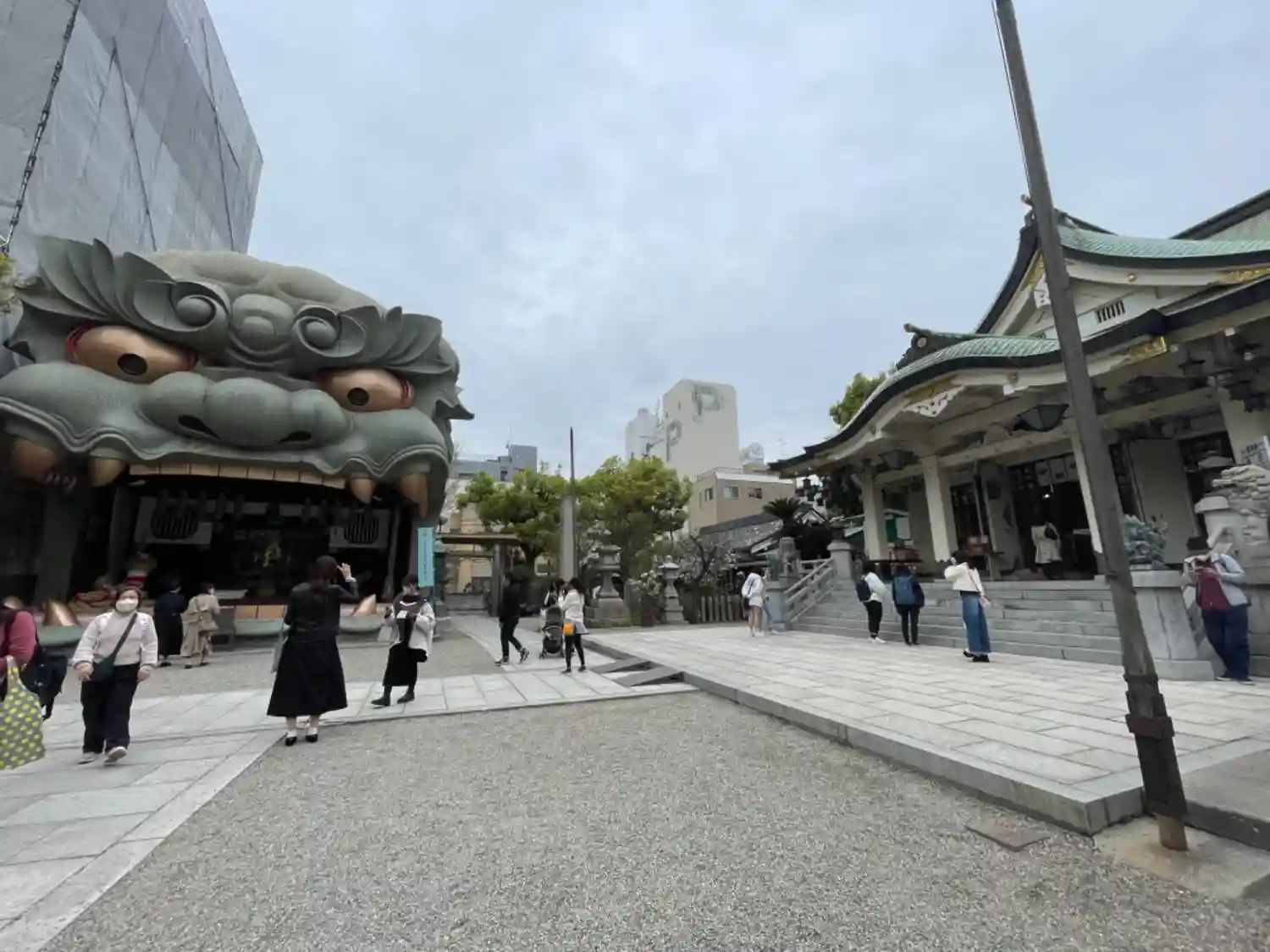 難波八阪神社さんの御朱印を書置きで拝受。こんな大きな狛犬がいるとはほぼ観光地化しとりますね。