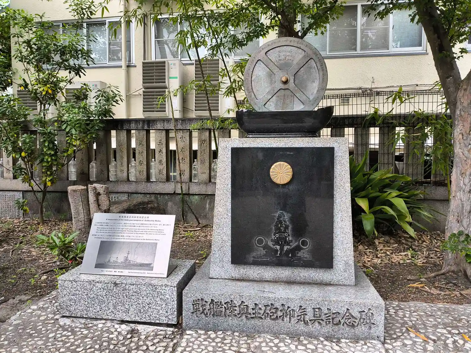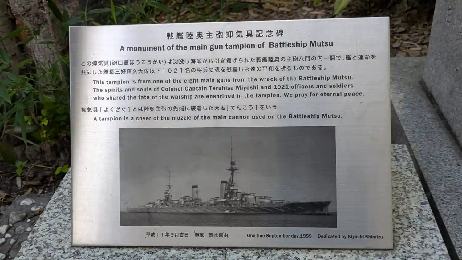 さらに右隣にある<戦艦陸奥主砲抑気具記念碑>。戦艦陸奥の主砲の蓋。