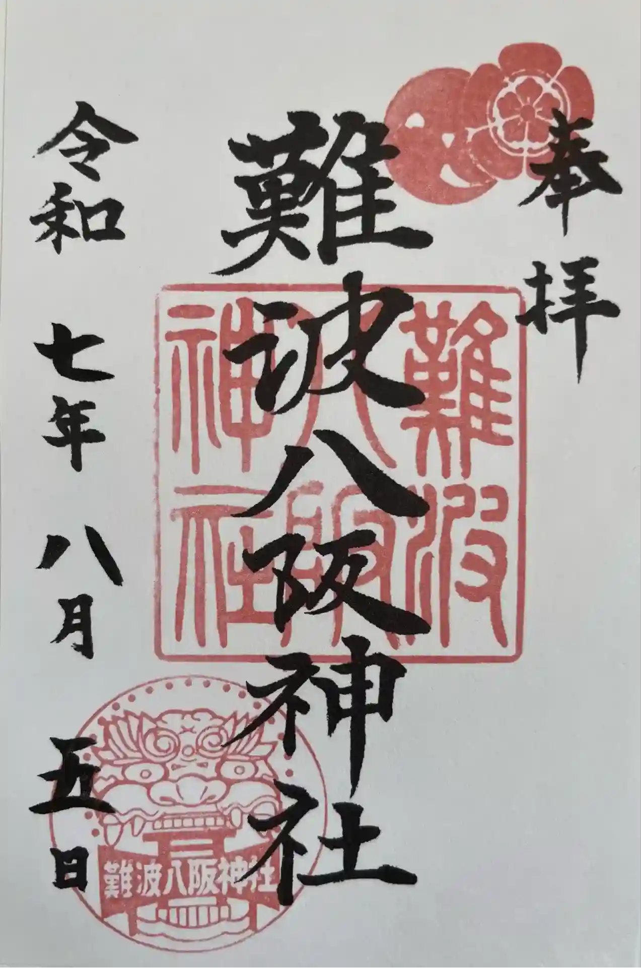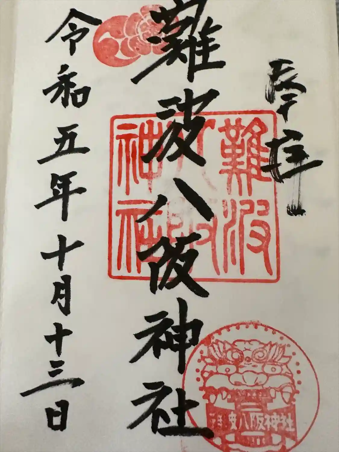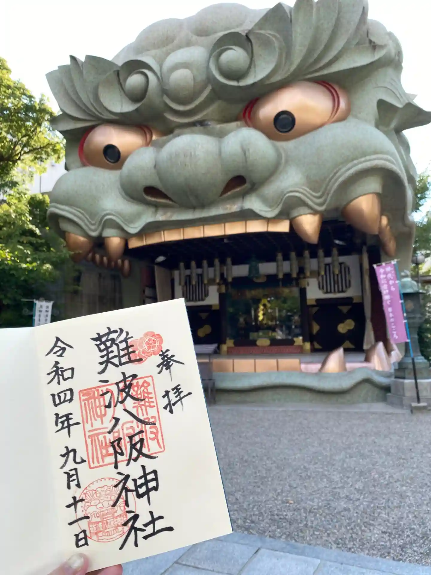 何といっても獅子殿がインパクト大の難波八坂神社。御朱印にも獅子のスタンプが押印されていました。