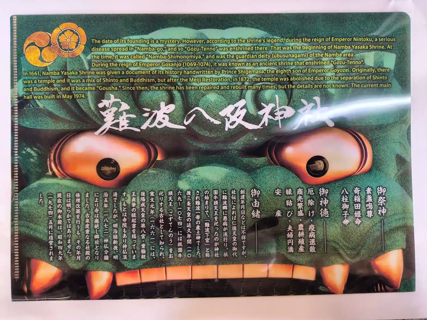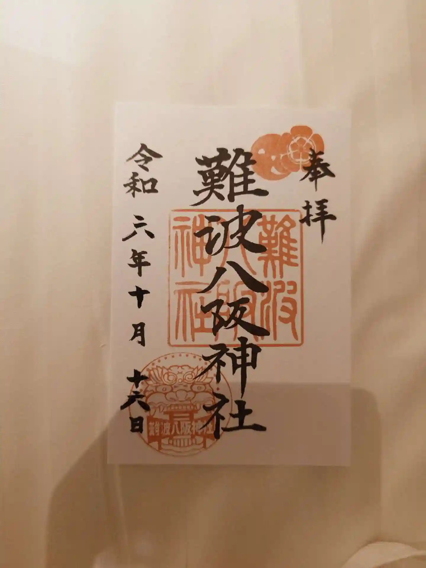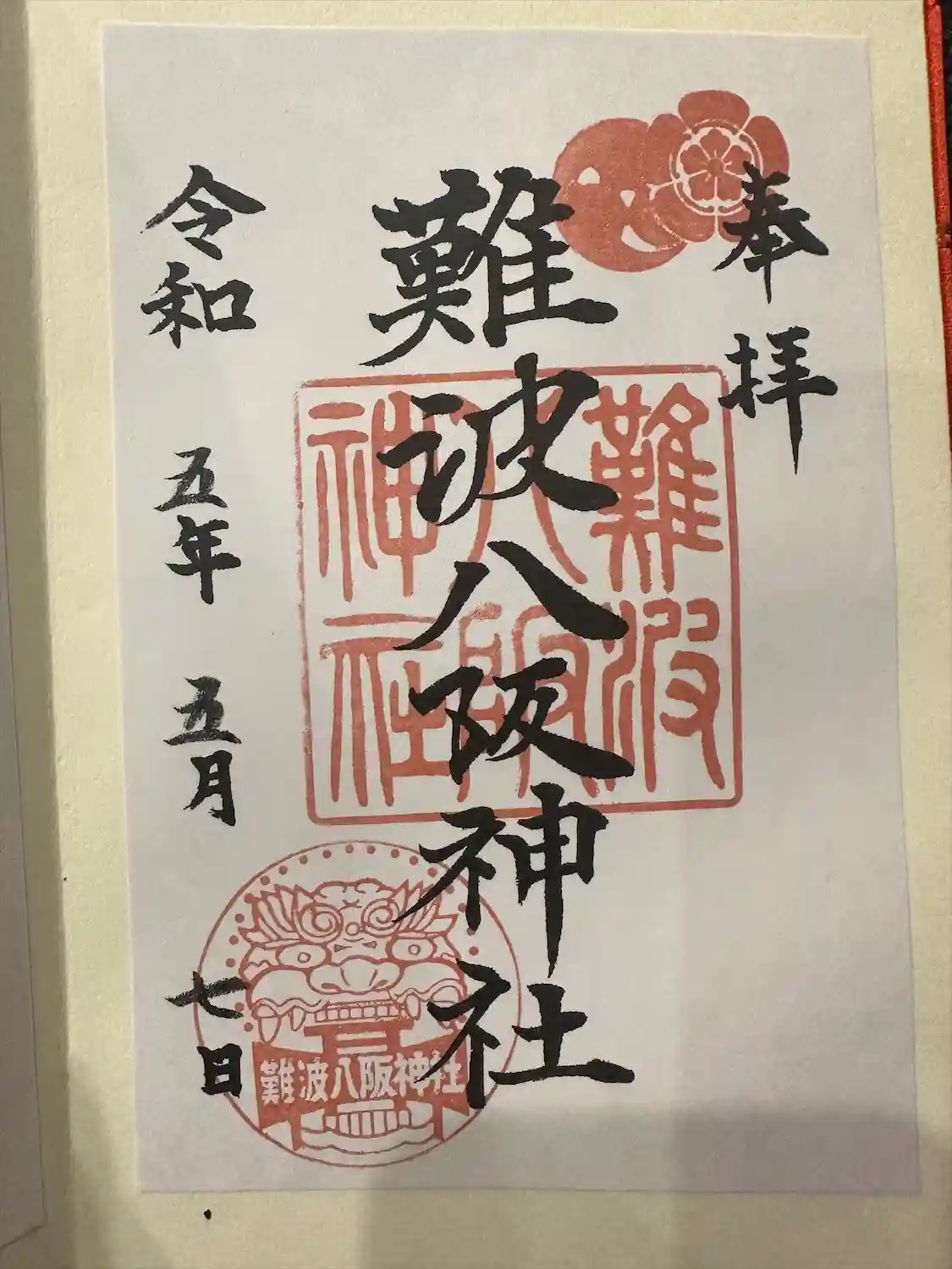 何といっても獅子殿がインパクト大の難波八坂神社。御朱印にも獅子のスタンプが押印されていました。