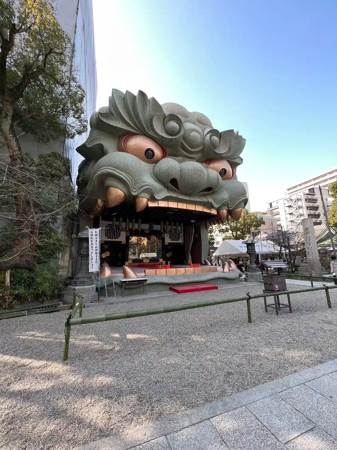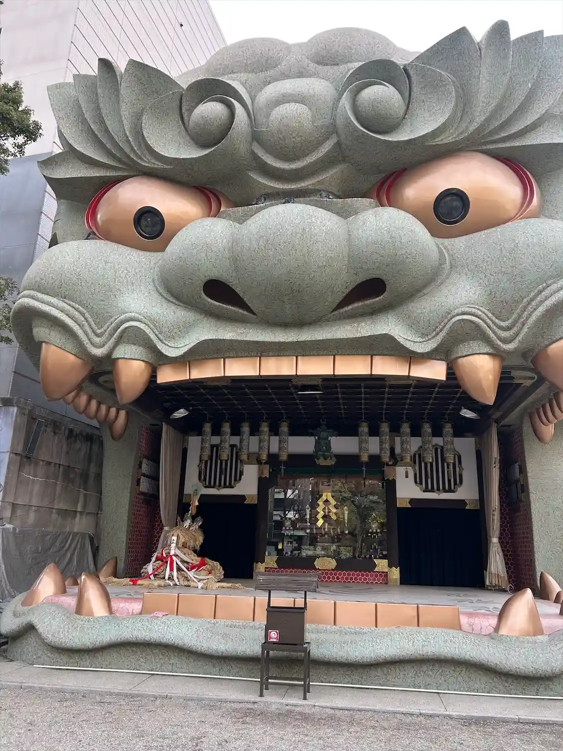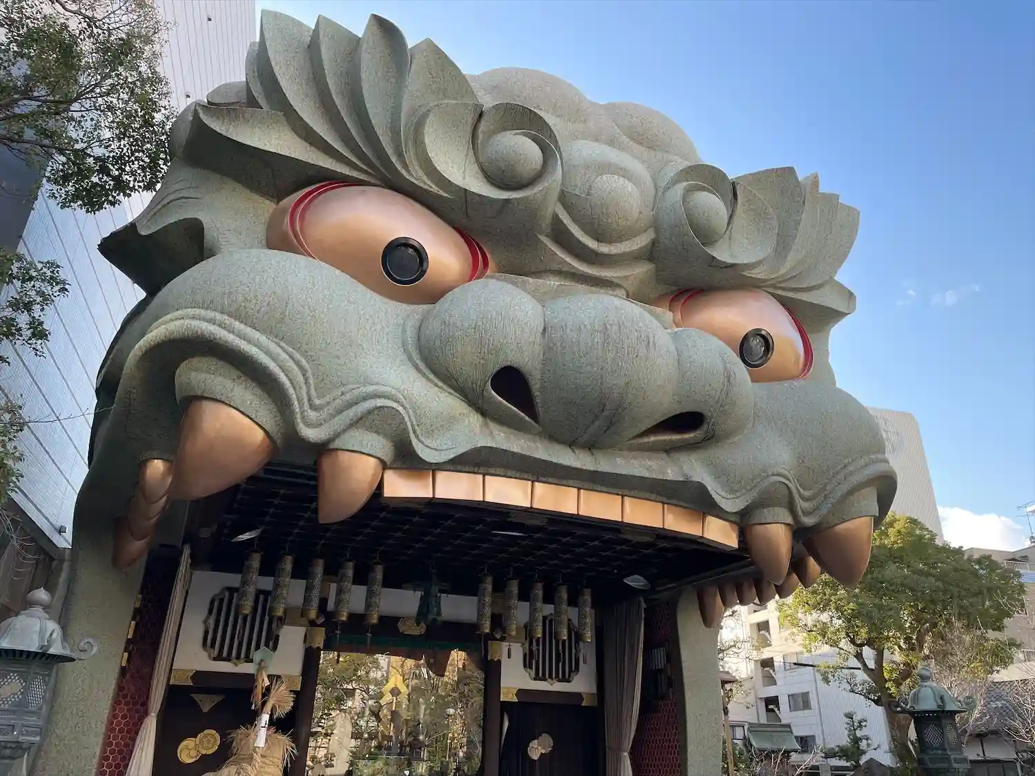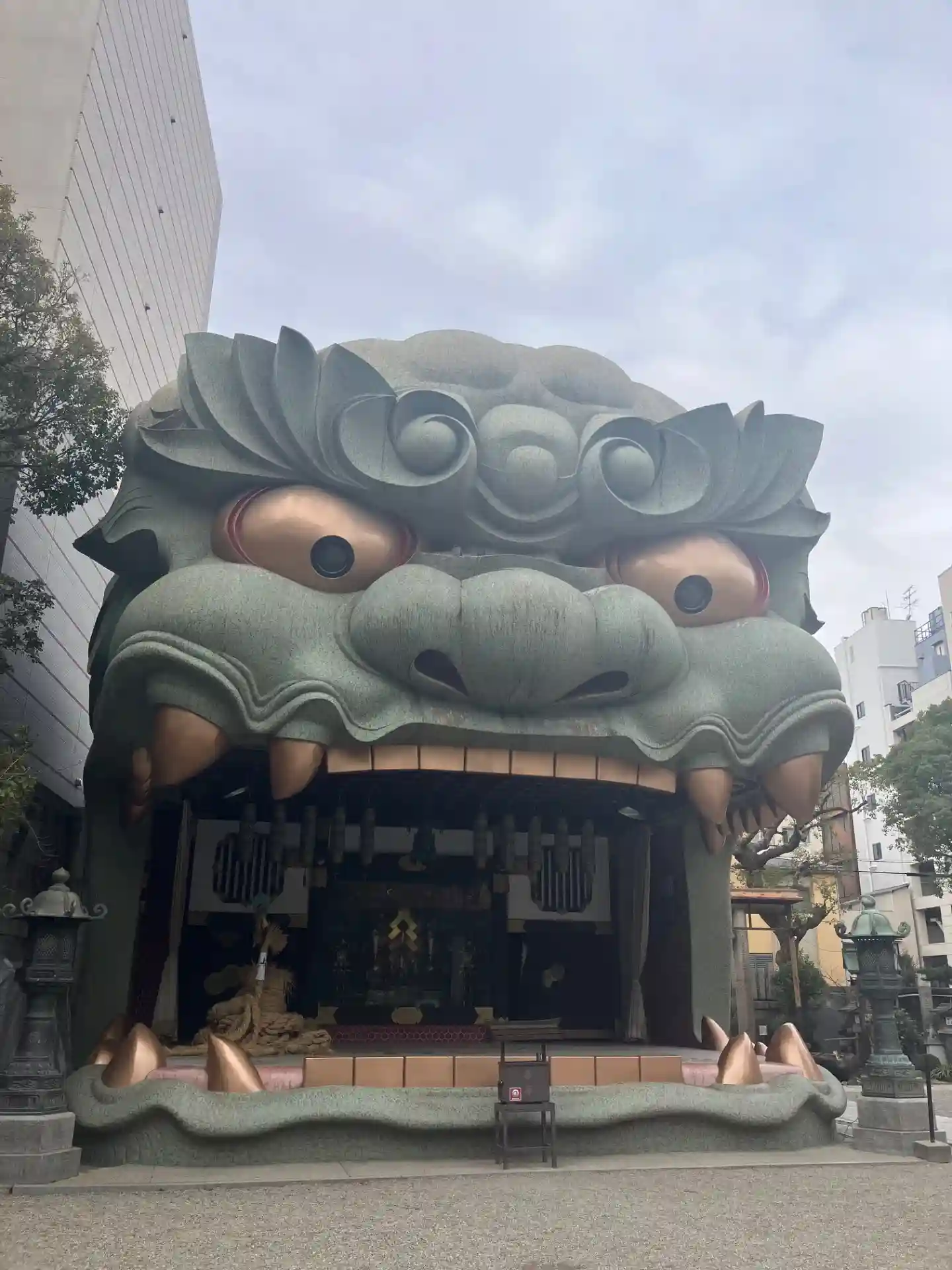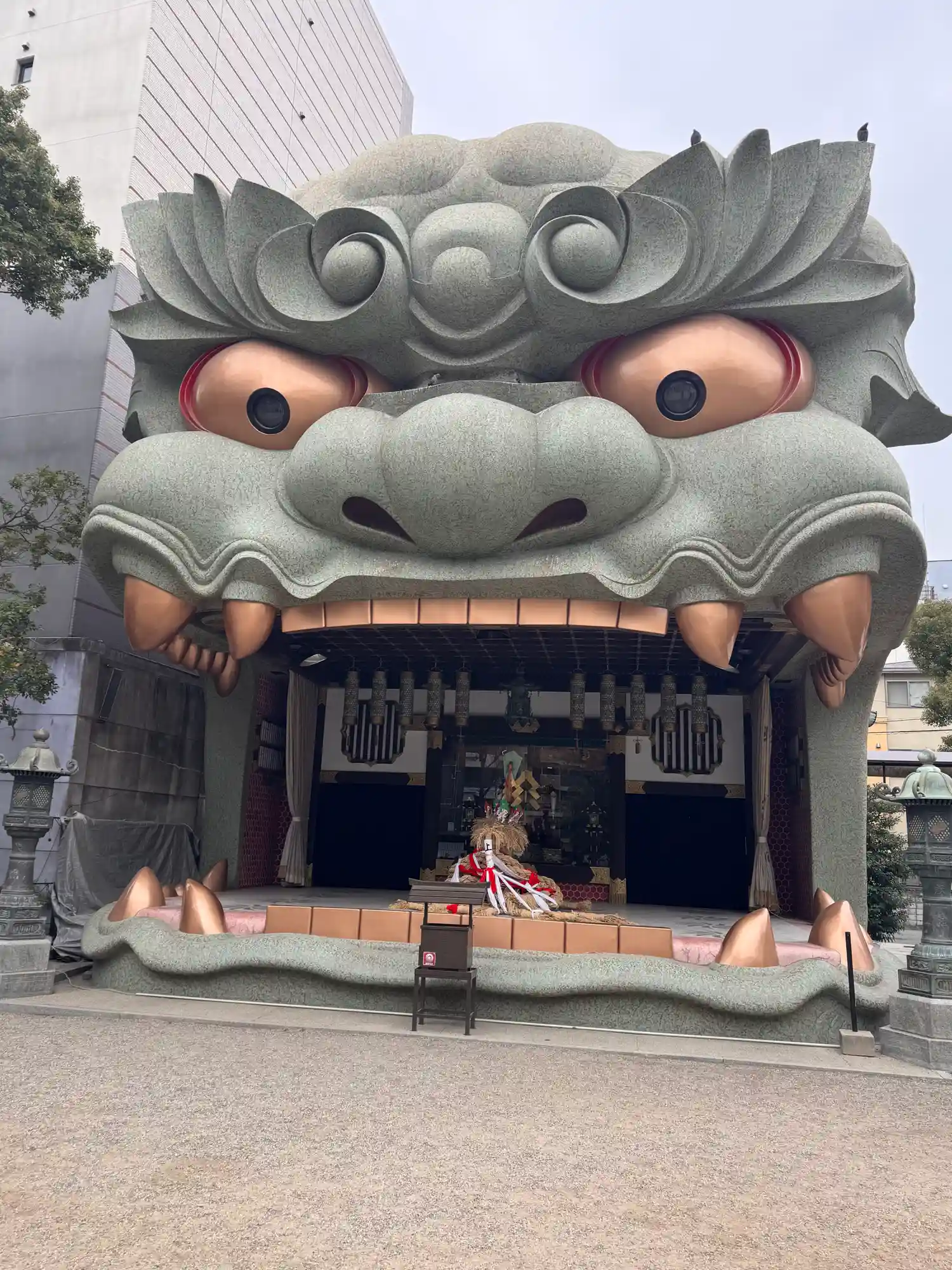 来ましたデカい獅子がガォ~って感じでお出迎えしてます😊