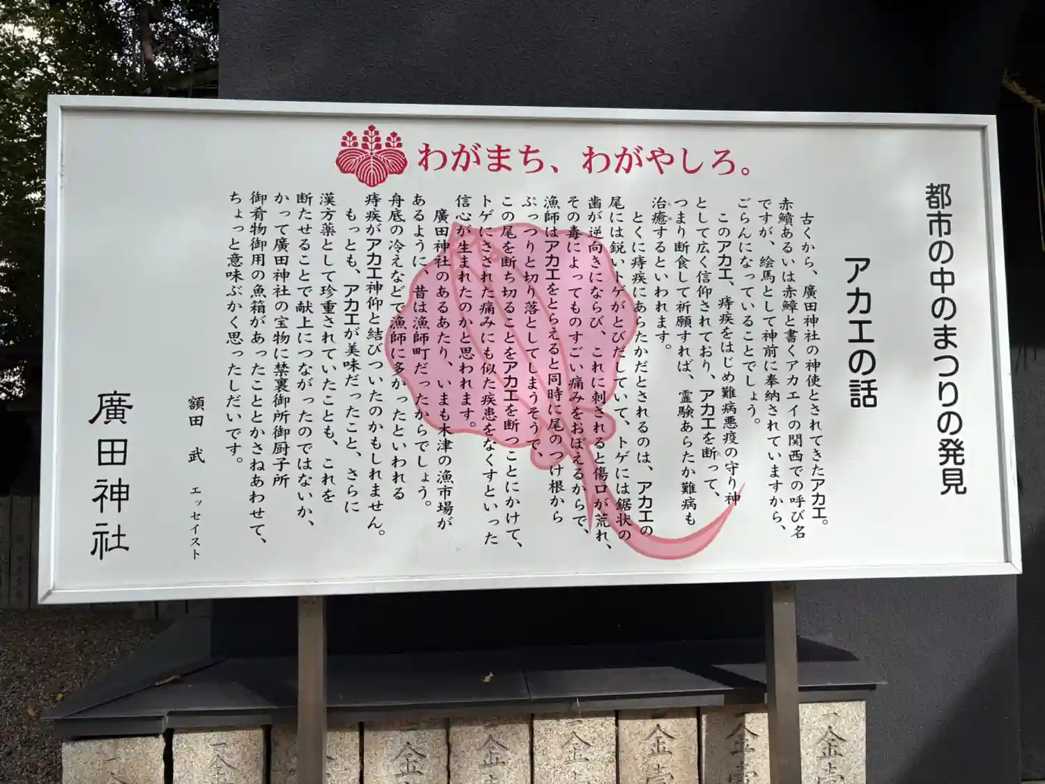 今宮戎神社近くの廣田神社へ。アカエの絵が奉納されており、なぜにエイ?と思ったら少彦名神の生まれ変わ…