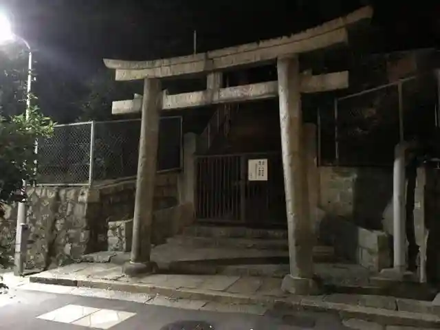 四天王寺から難波まで歩いてら途中で通りました。一心寺の反対側である神社です。大阪夏の陣と関係深い場所です。真田幸村戦死の地です。入り口は二ヶ所がらました、道路の角を曲がったらまた鳥居があらわしました。