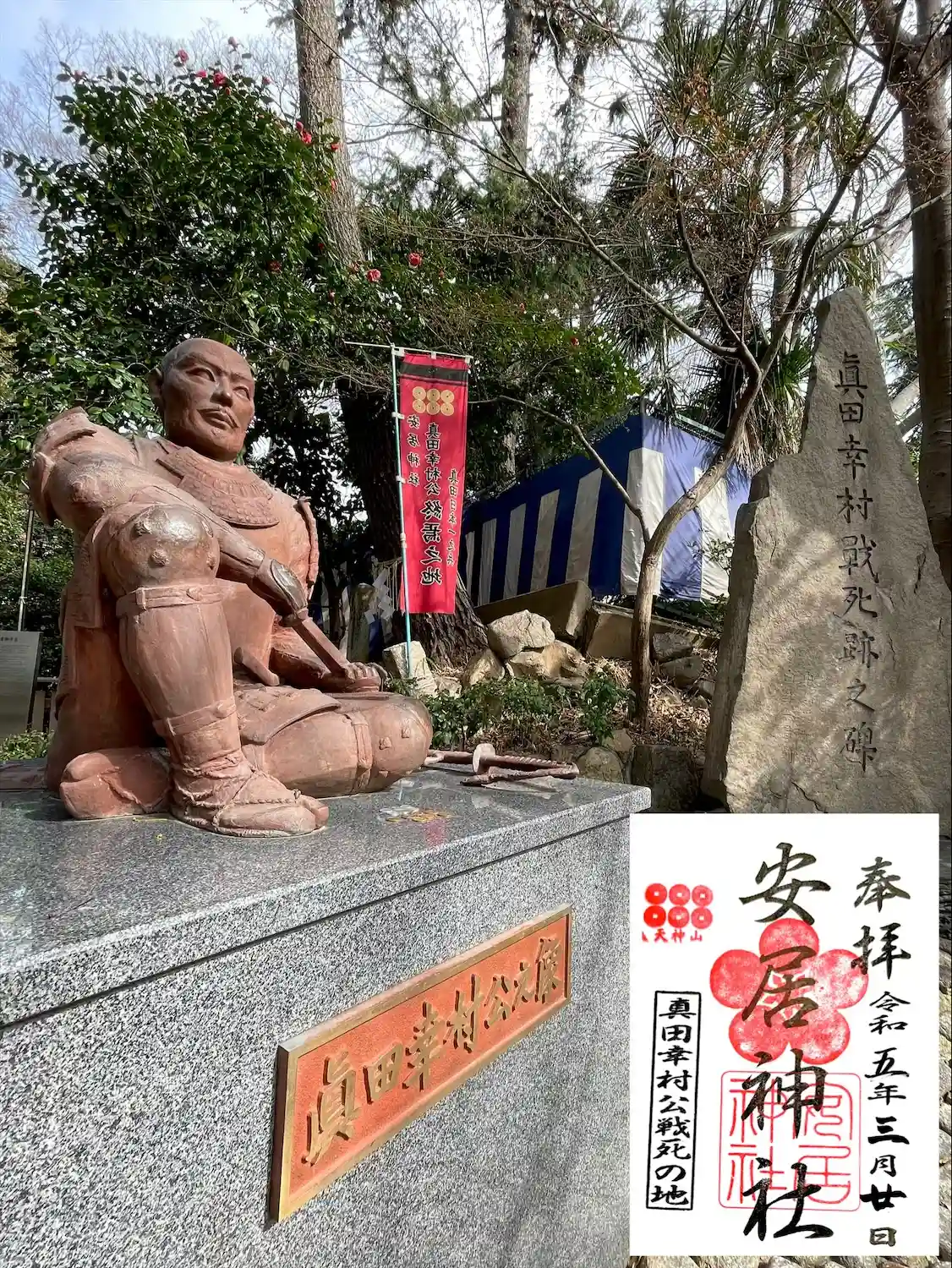 大阪市内の真田幸村ゆかりの神社は3社目。こちらで多分 最後lol それは大阪夏の陣で討たれた場所… 境内には幸村の像があって旗には終焉之地と書いてある。