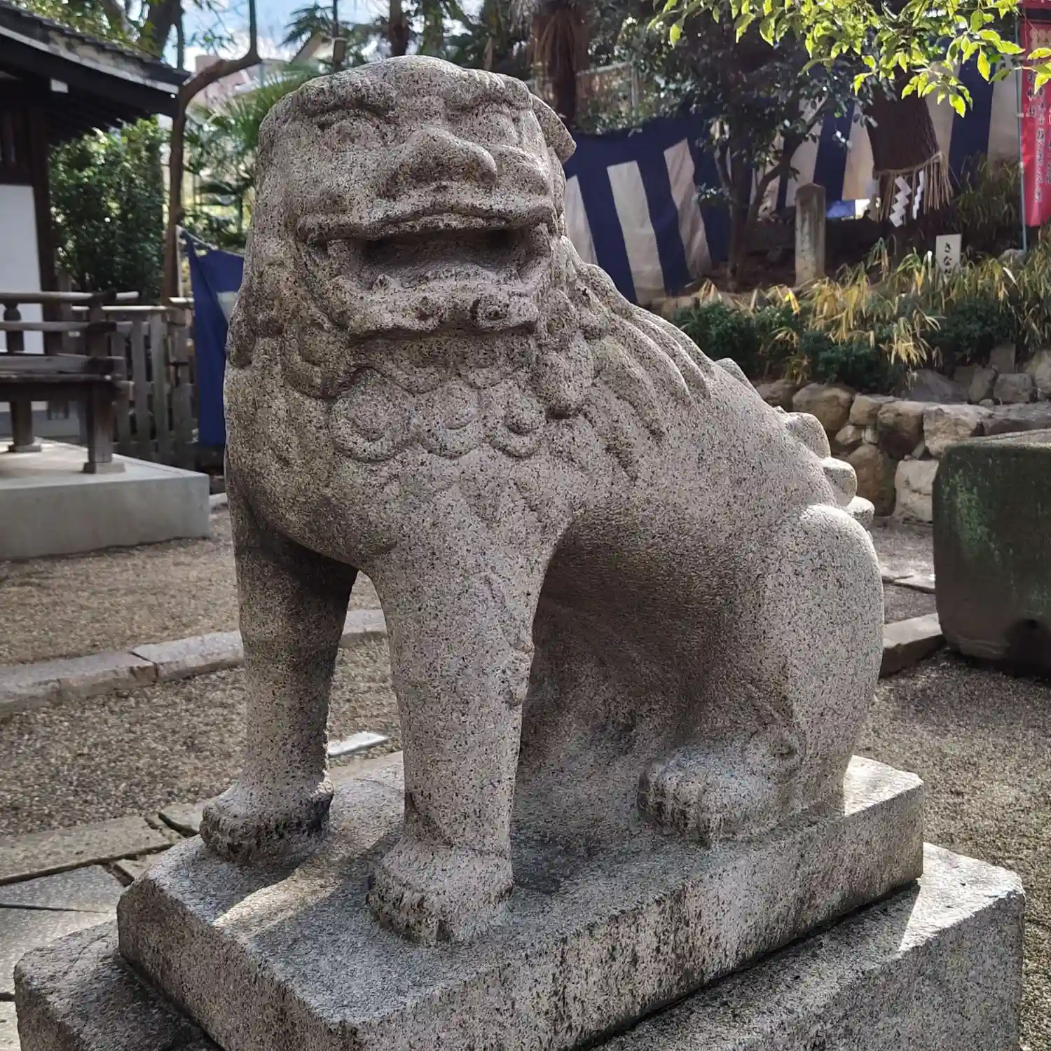 何故か両方の狛犬共に片耳が欠損している。