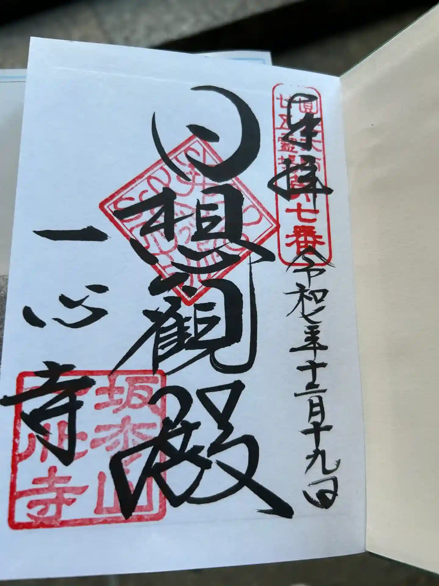 右上に「円光大師二十五霊場 第七番」の印の上に「奉拝」と日付が墨書きされています。