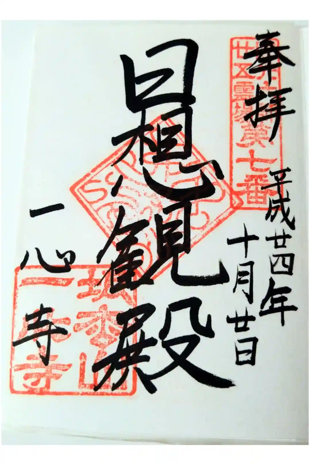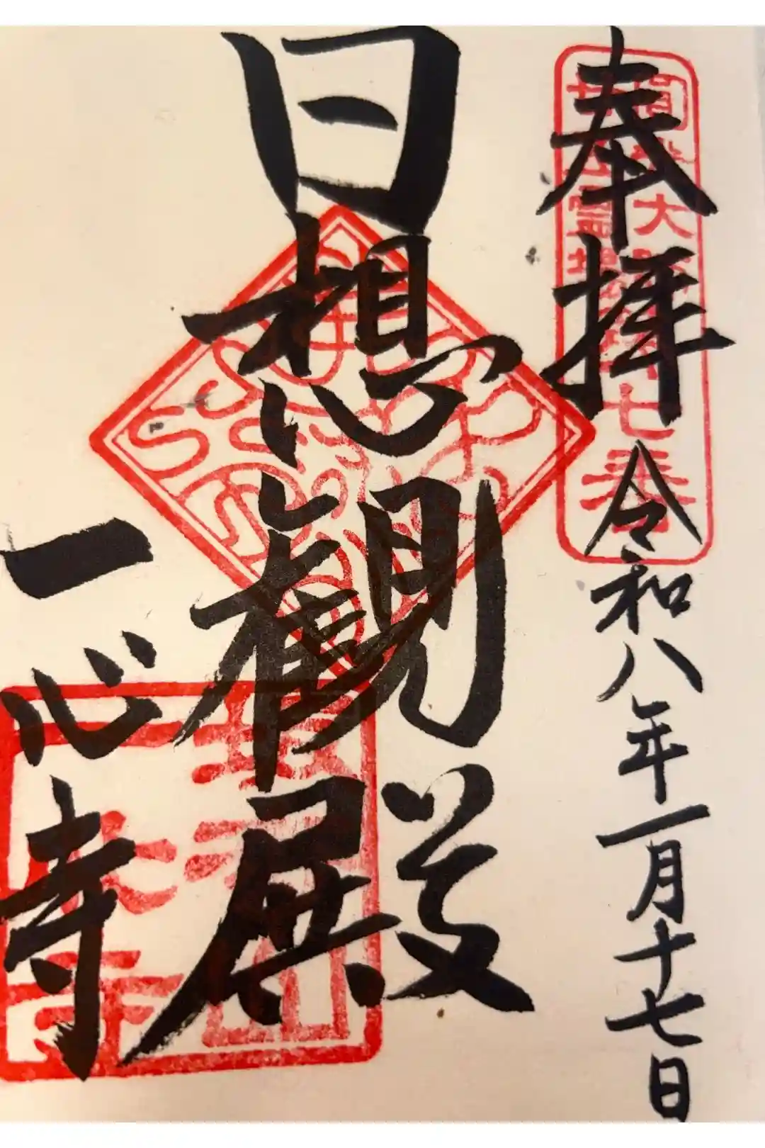 真ん中に「日想観殿」と墨書きされ、寺印が重ねられています。