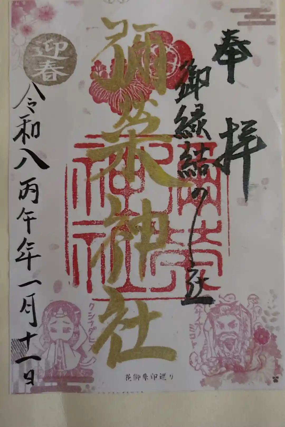 前回いただいた通常印と新年御朱印の2種があり、書き置きで新年御朱印をいただきました。